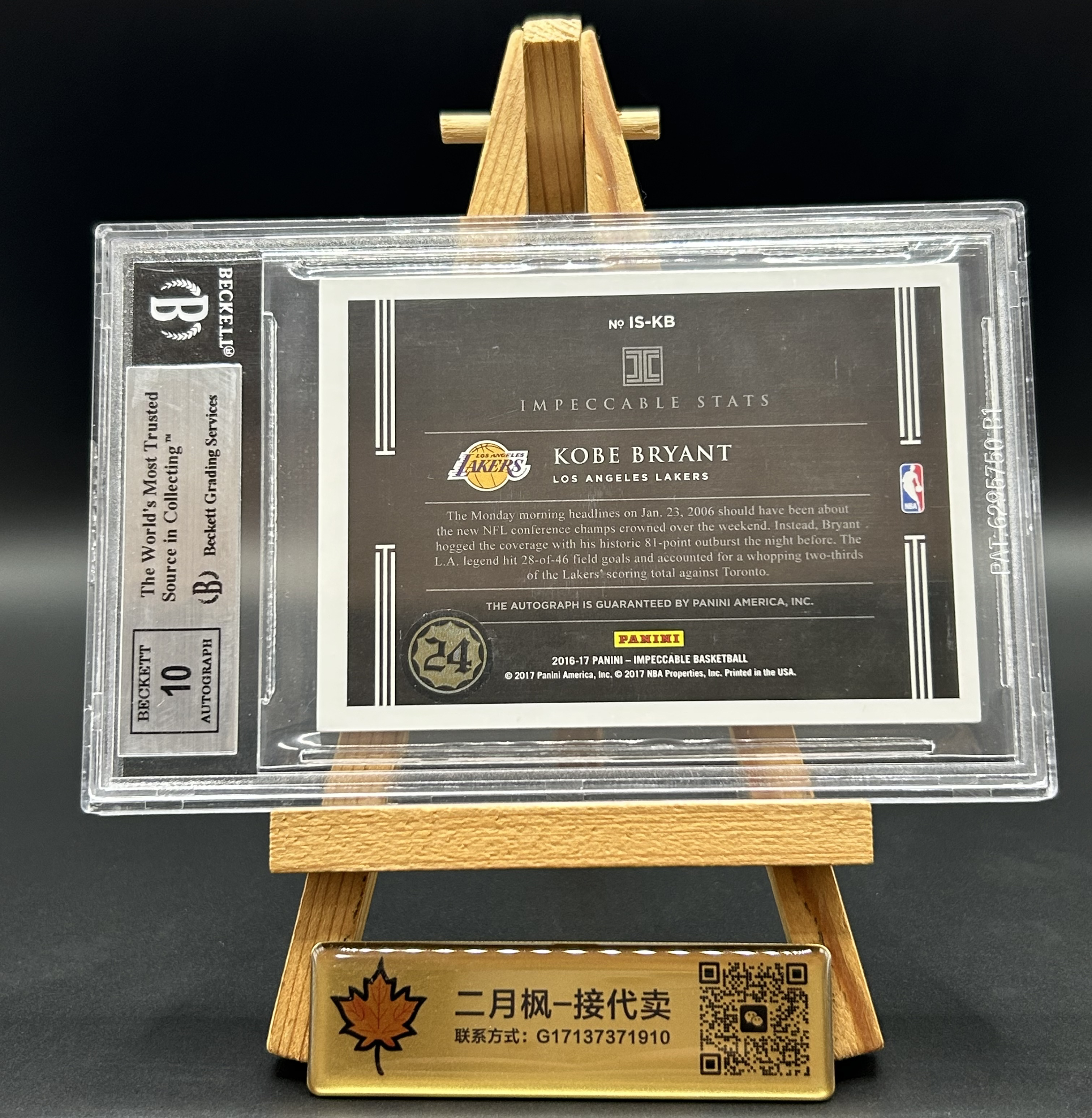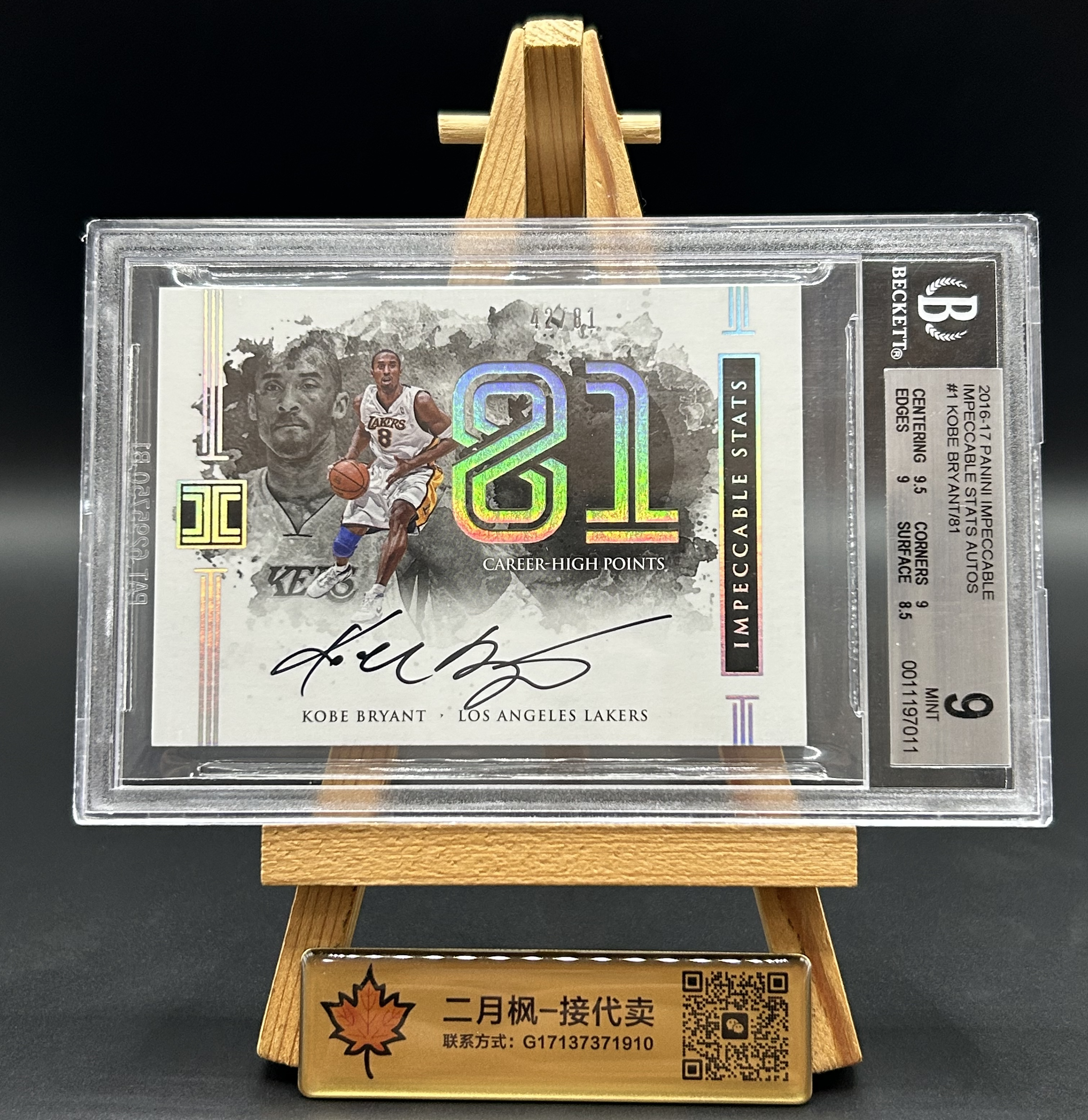 【二月枫-承接代卖】2016-17 帕尼尼 Impeccable 元年 小真金白银 湖人 Kobe Bryant 科比 布莱恩特 签字 数据签 81分屠龙最高分 闪版卡签 81编 BGS9/10分评级