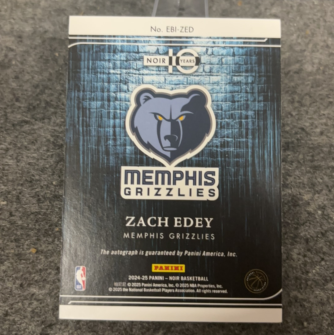 2024-25 Panini Noir Zach Edey RC noir系列 扎克伊迪 灰熊 周志豪 75编 霓虹灯卡签 卡品如图 收藏必备