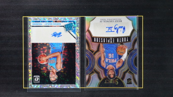 关于卡品问题,请录制并保留开箱视频,开箱视频作为维权凭证,如无开箱视频无法配合维权。有明显瑕疵,划痕,压痕等问题会注明并有细节图,特殊卡种如折射、镜面卡、聚光灯很难有非常完美的卡品,如您追求品相完美请直接购买评级卡。厚卡多数会有轻微的白边白角现象属于通行品,瑕疵明显的都会注明。