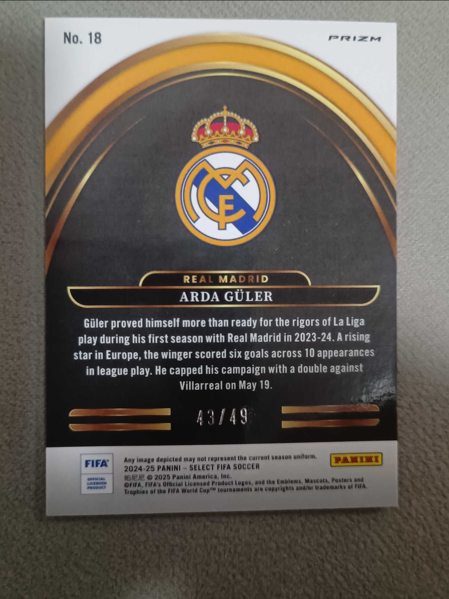 2024-25 Panini Select Arda Güler 【接代拍】西甲 Select 居莱尔 皇家马德里 土耳其 超新星 43/49编 红折 实卡超美 未来可期 队迷人迷 收藏必备