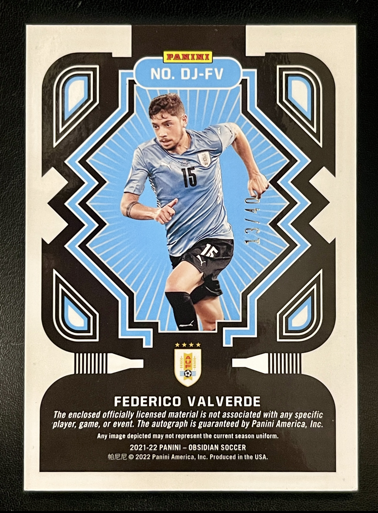 巴尔韦德 2021-22 Panini 黑曜石 13/40编 折射非常漂亮 双窗球衣实物切割 亲笔签名 墨迹完美 乌拉圭 皇马 全能中场 银河战舰新领袖 姆巴佩贝林厄姆队友