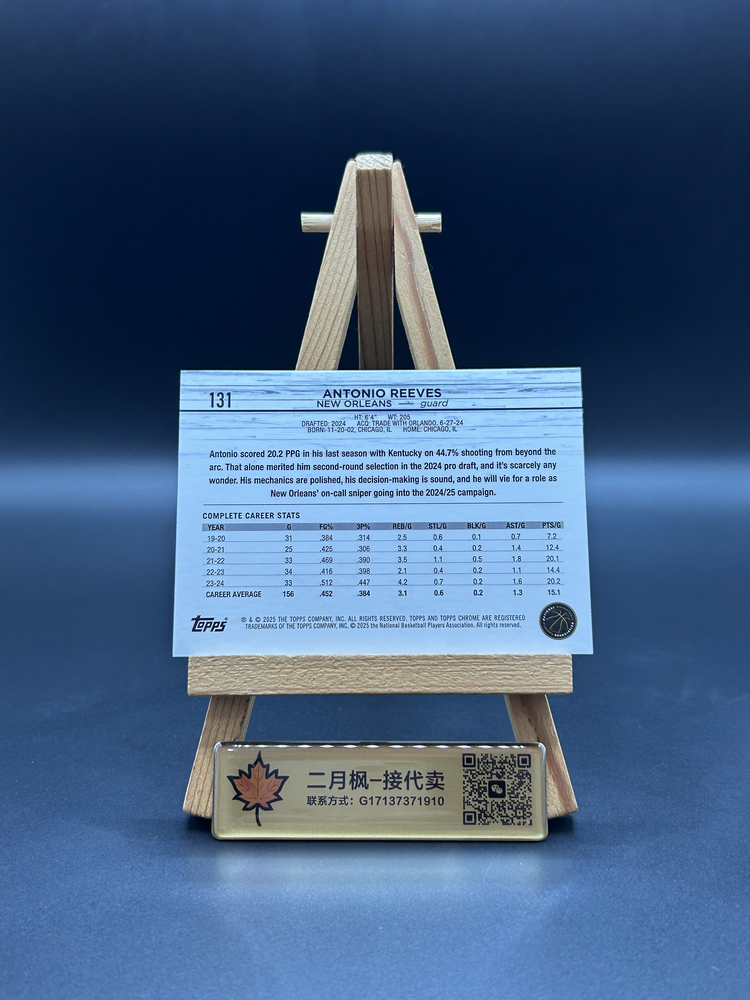 【二月枫-承接代卖】2024-25 Topps Chrome 篮球TC 鹈鹕 Antonio Reeves 安东尼奥 里夫斯 新秀RC 折射 蓝熔岩折 75编 实卡精美 专收凑套必备 #Z0530