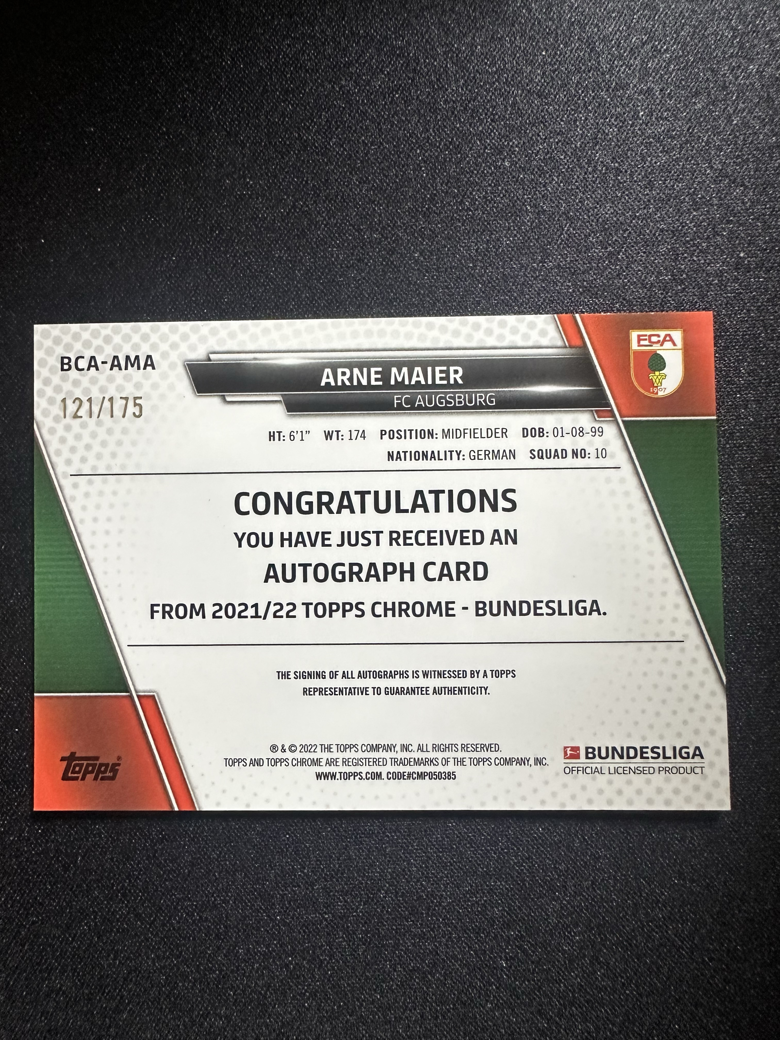 2021-22 Topps Chrome Arne Maier 德甲Chrome 奥格斯堡 迈尔 175编 完美签 卡片精美 收藏必备 刺客-落枫