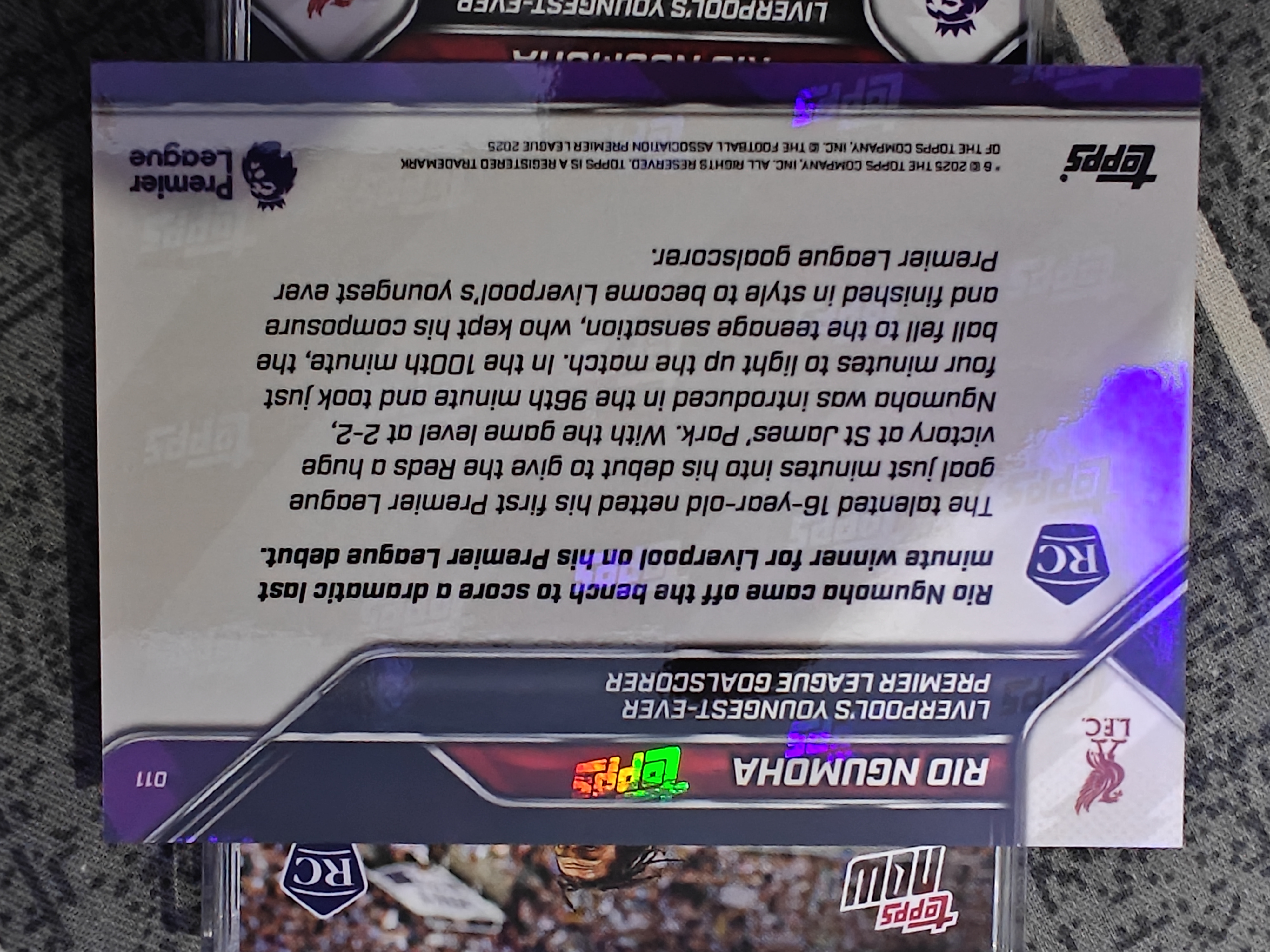 2025 Topps High Topps Rio Ngumoha 恩古莫哈 Topps now系列 RC新秀标 英超 利物浦 利物浦队史最年轻的进球球员!小孩儿哥在异常惨烈的对抗中绝杀纽卡!