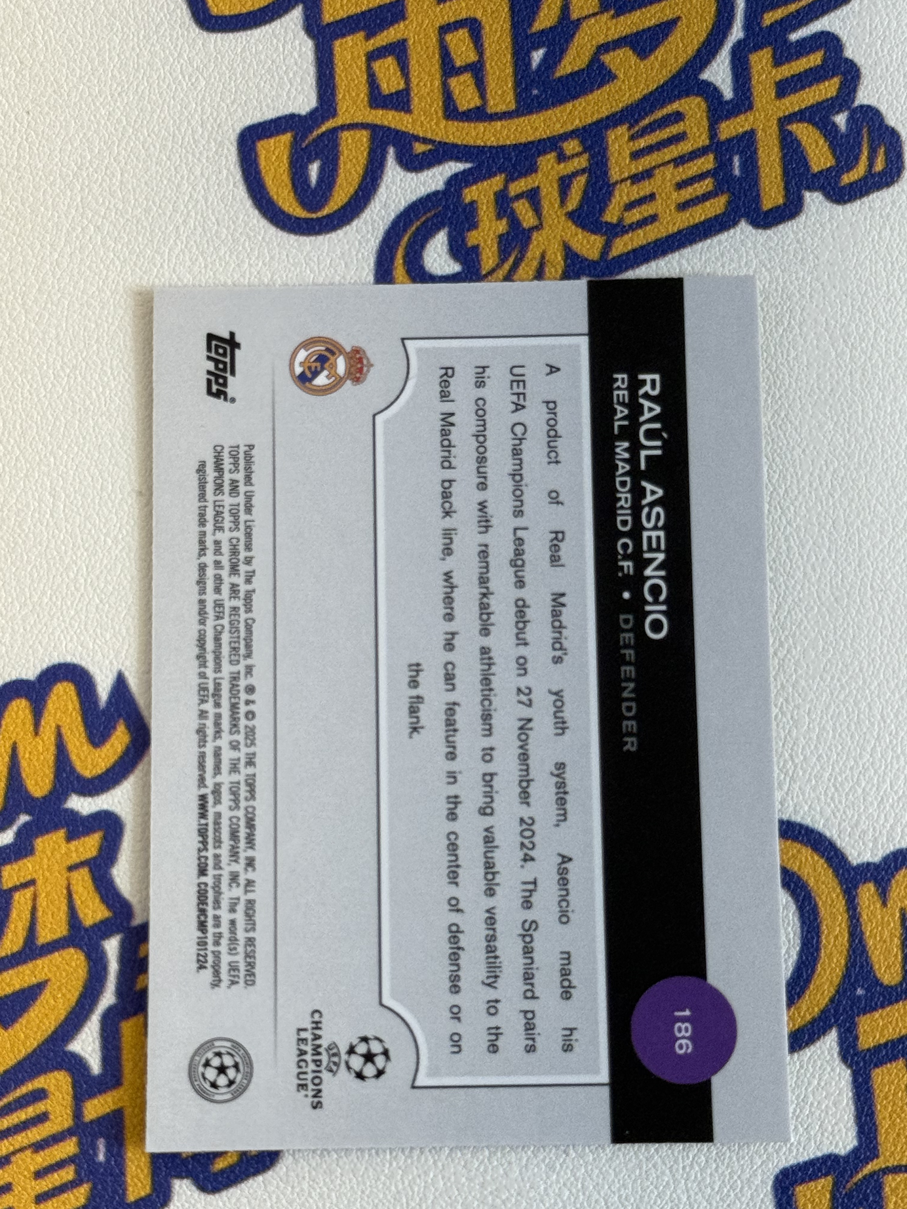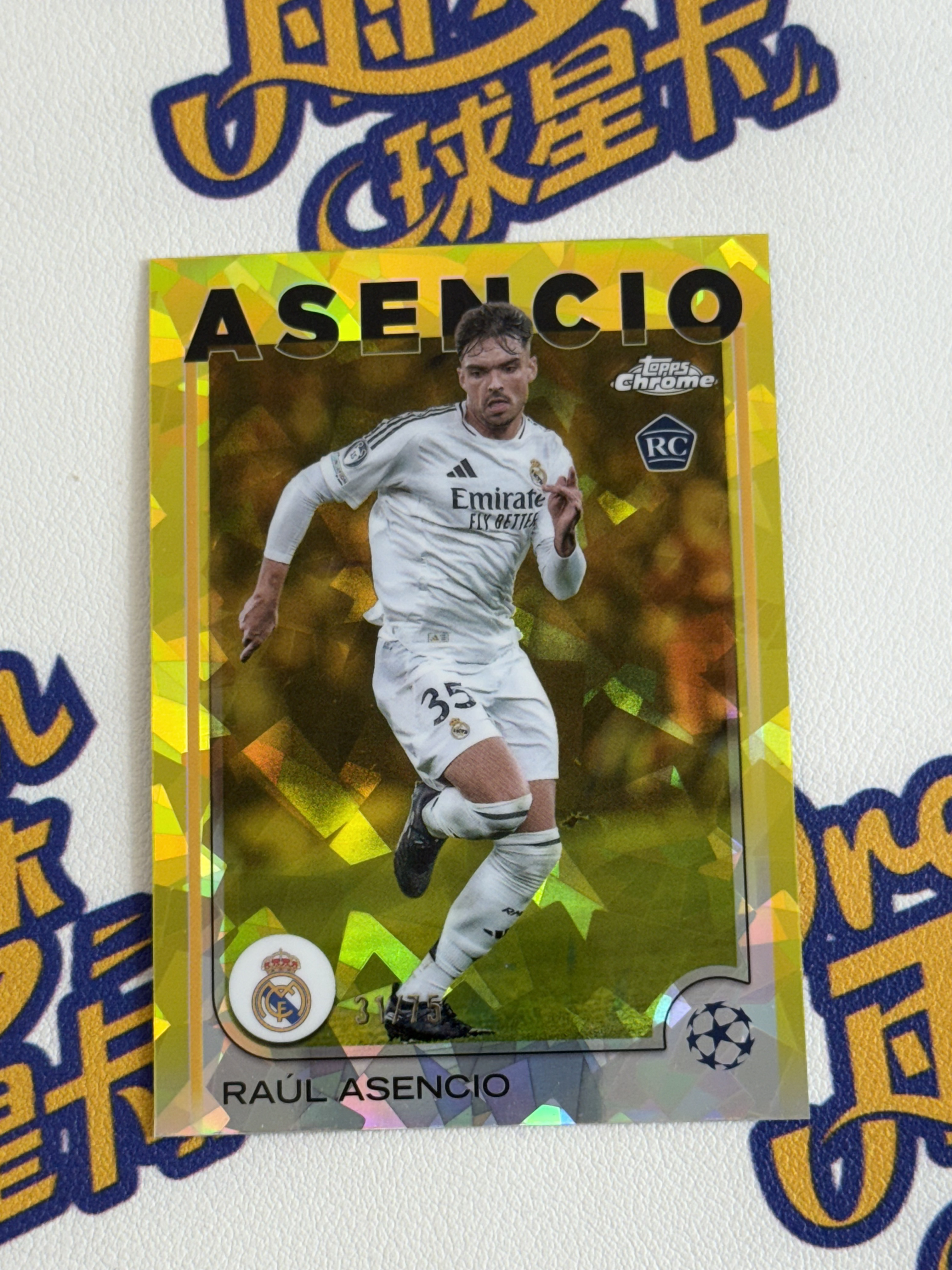 2024-25 Topps Chrome Raul Asencio RC 阿森西奥 皇马 新秀 蓝宝石 75编 31/75编 黄碎冰 明日之星 投资必备 卡品如图 (黑昧)