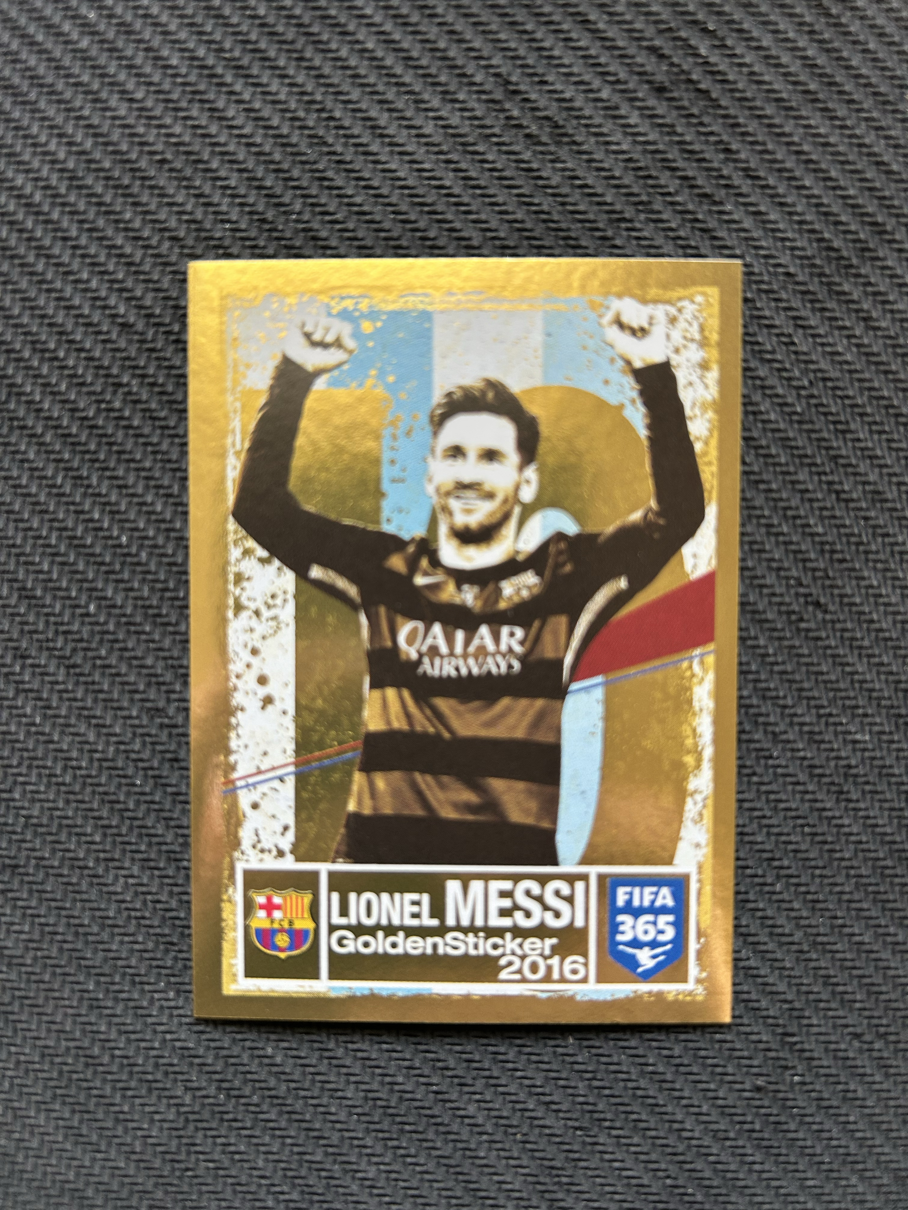 2017 Panini FIFA365 Lionel Messi 贴纸 梅西 金版闪贴 庆祝选图 巴塞罗那 阿根廷 传奇前锋 迈阿密国际 实卡精美 专收凑套必备 卡品如图!