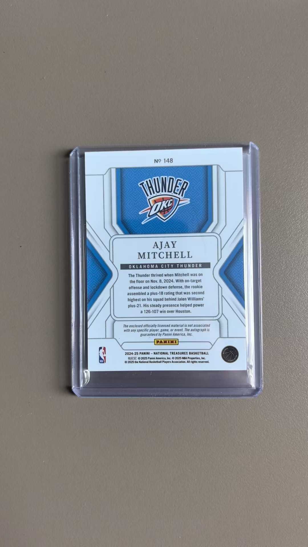 2024-25 Panini National Treasures Ajay Mitchell RC 国宝系列 雷霆队好秀 阿杰 米切尔 25/75 编 rpa 签字卡 未来可期 收藏佳品