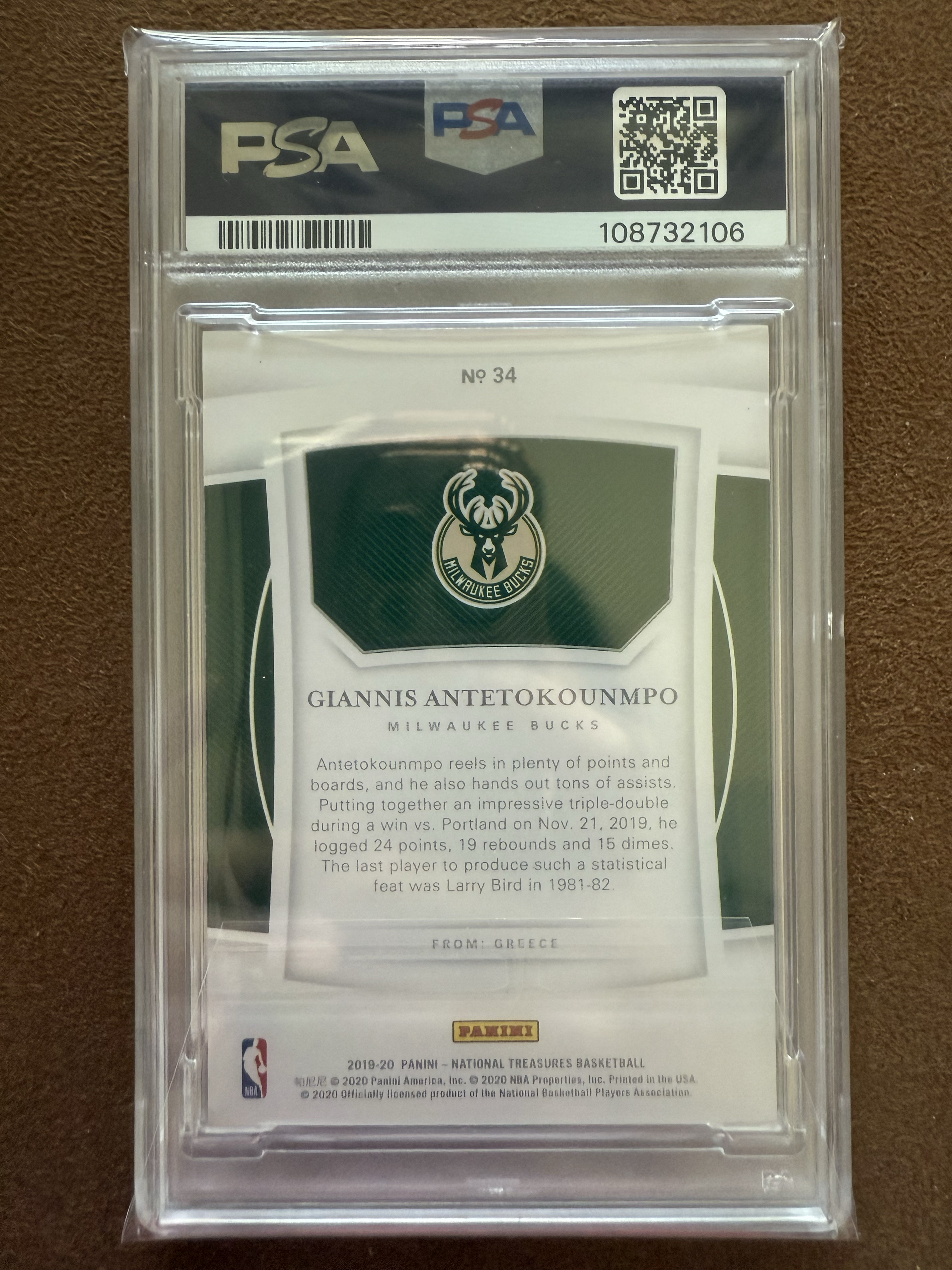 2019 Panini National Treasures Giannis Antetokounmpo 【FL拍卖】国宝 字母哥 扬尼斯 阿德托昆博 1/1 编 湖水蓝 正base 铂金闪