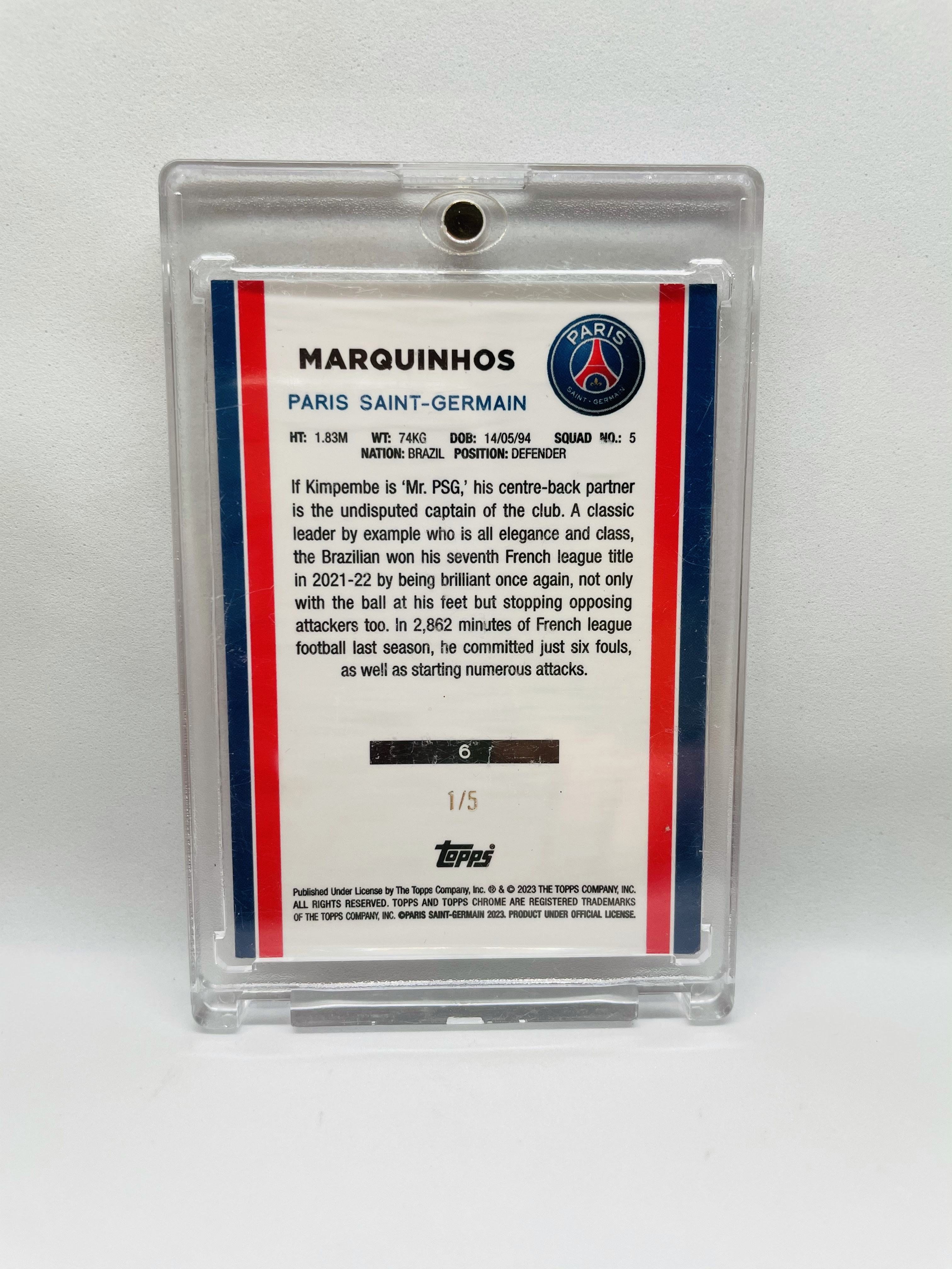 2022-23 Topps Chrome Marquinhos TC 大巴黎圣日耳曼 巴西 马尔基尼奥斯 1/5编 首编 超低编 卡品如图