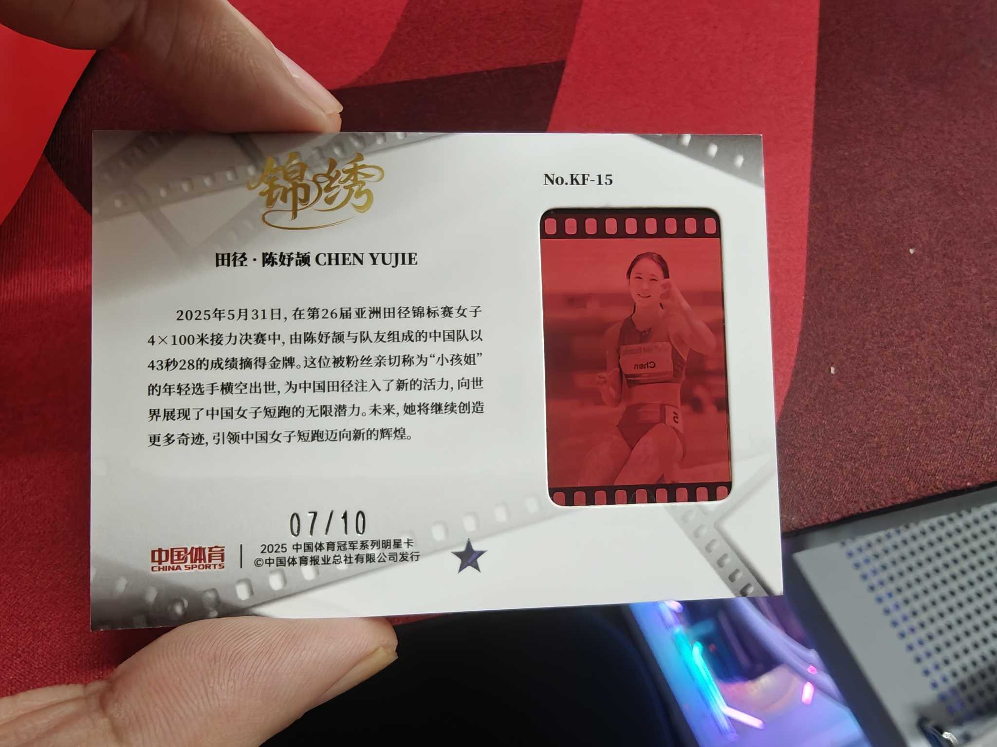 2025 奇卡 QICA 锦绣 陈妤颉 RC 金色 10编 7/10 瞬时凝息 胶片特卡 选图来自亚锦赛200米夺冠 未来田径之星