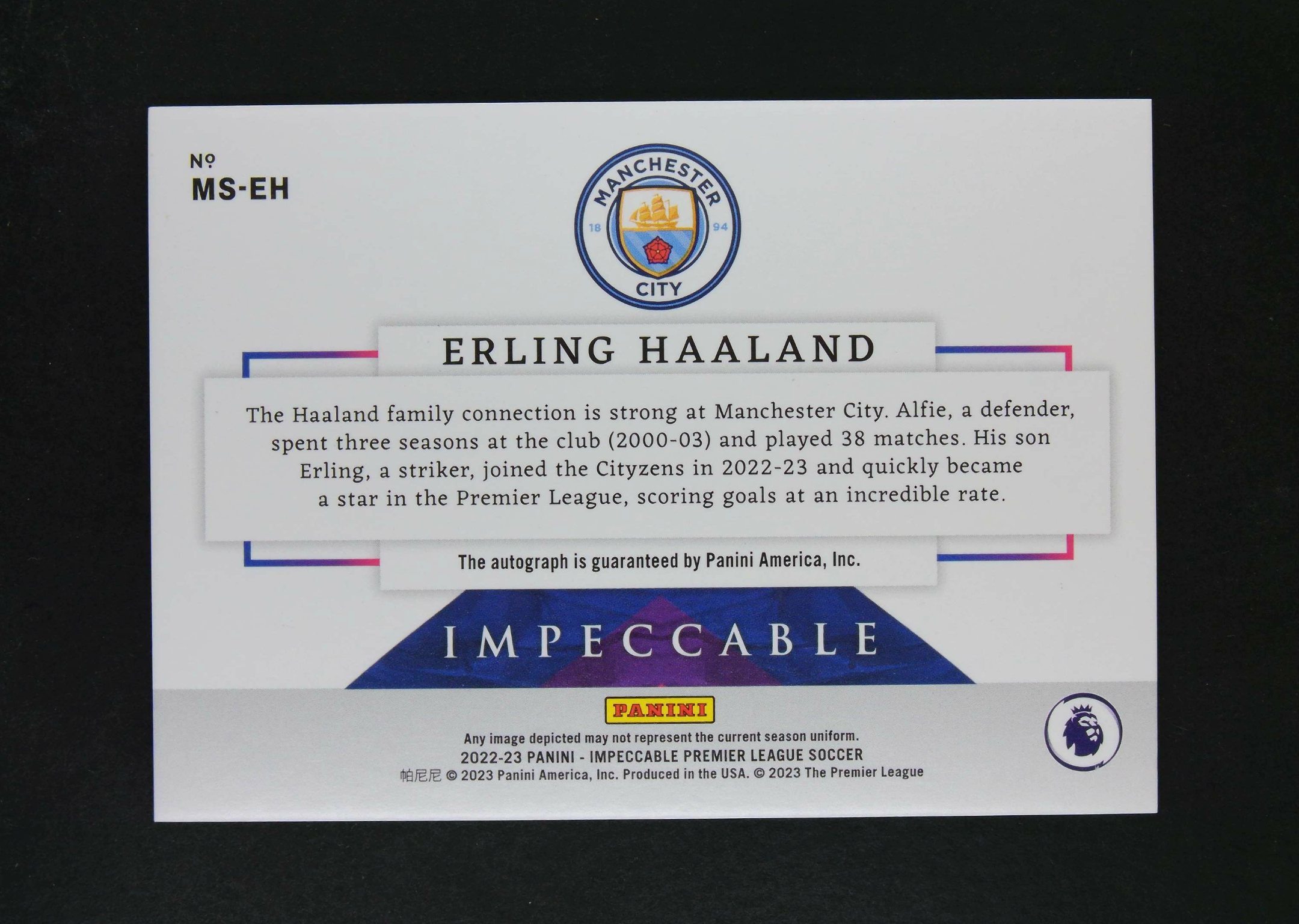 2022-23 Panini Impeccable Erling Haaland 埃尔林 哈兰德 签字 曼城 挪威 多特蒙德 英超 3/4编 超低编 小真金 瑕疵如图 战神无双 (BM@9.22刘)