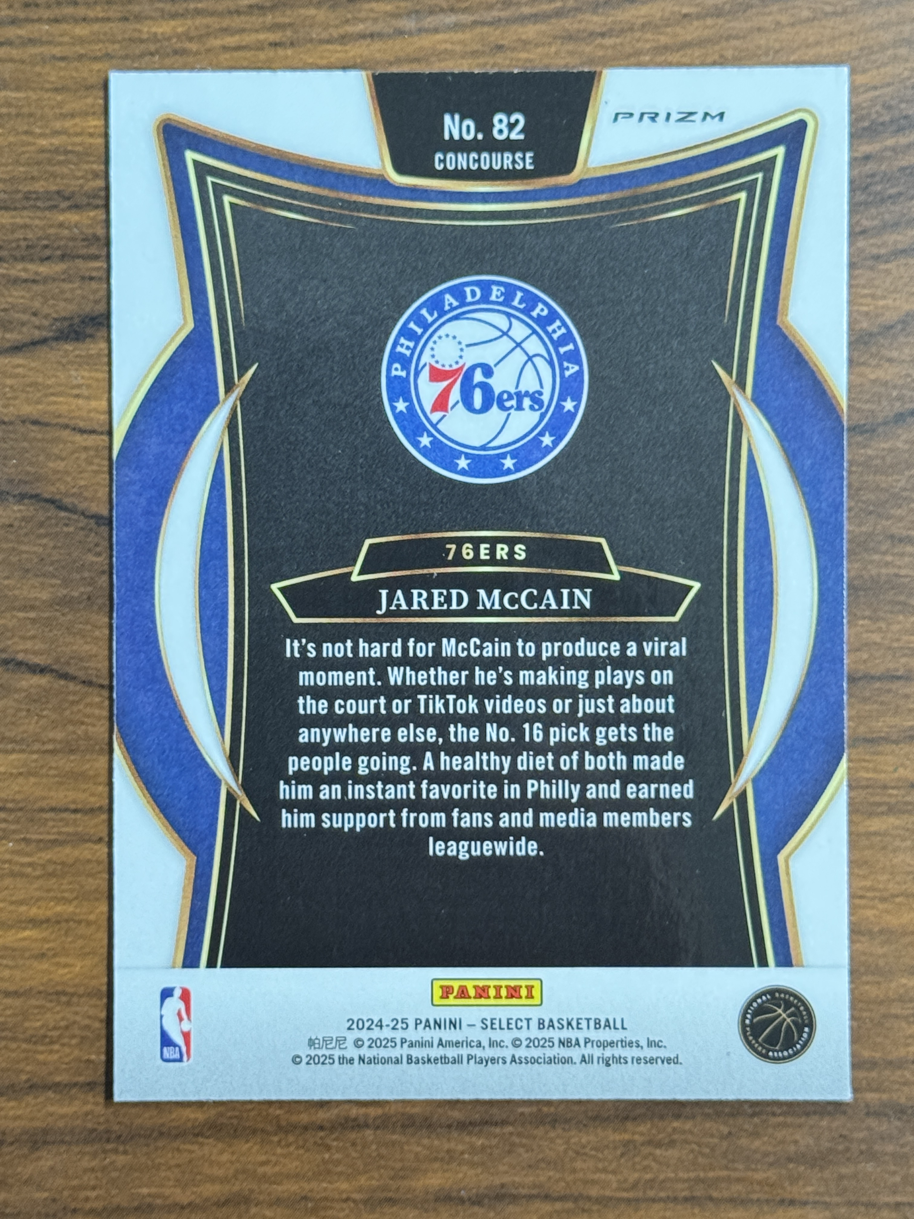 2024-25 Panini Select Jared McCain RC 贾里德 麦凯恩 魔仙哥 76人 新秀 折射 蓝碎冰折 1级