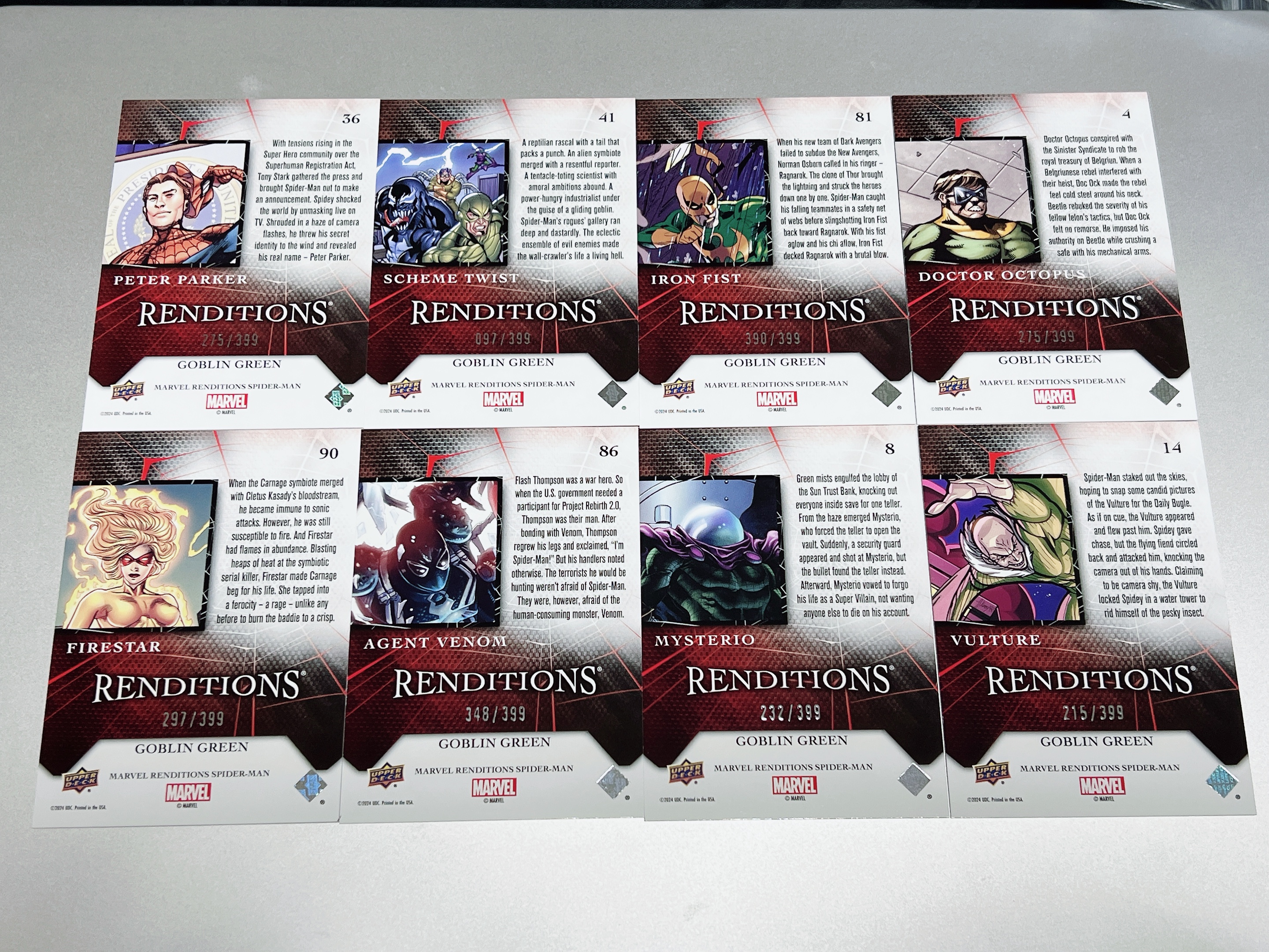 2024 Upper Deck Marvel (MCU) renditions 漫威 蜘蛛侠 演绎 彼得帕克 铁拳 章鱼博士 火焰星 毒液特工 神秘客 秃鹫  毒液 /399 8张打包 品相如图 #3