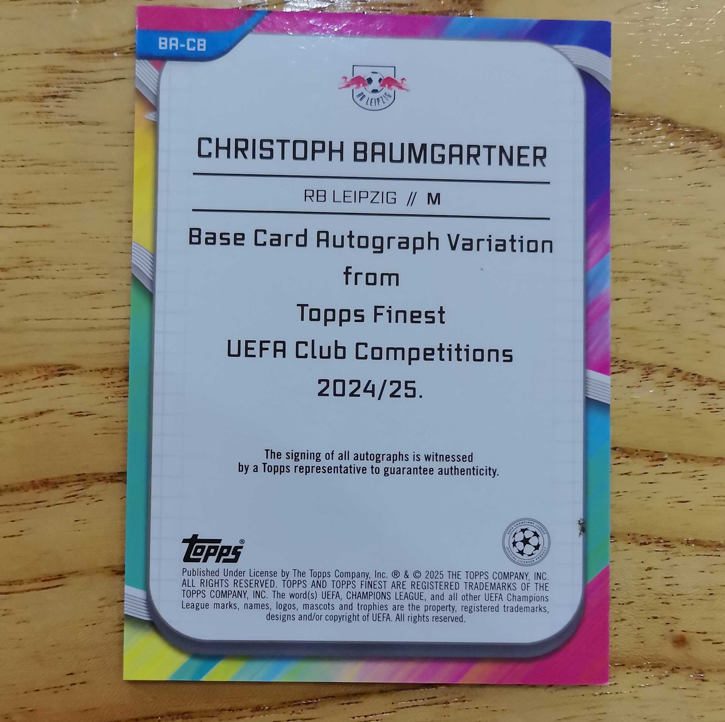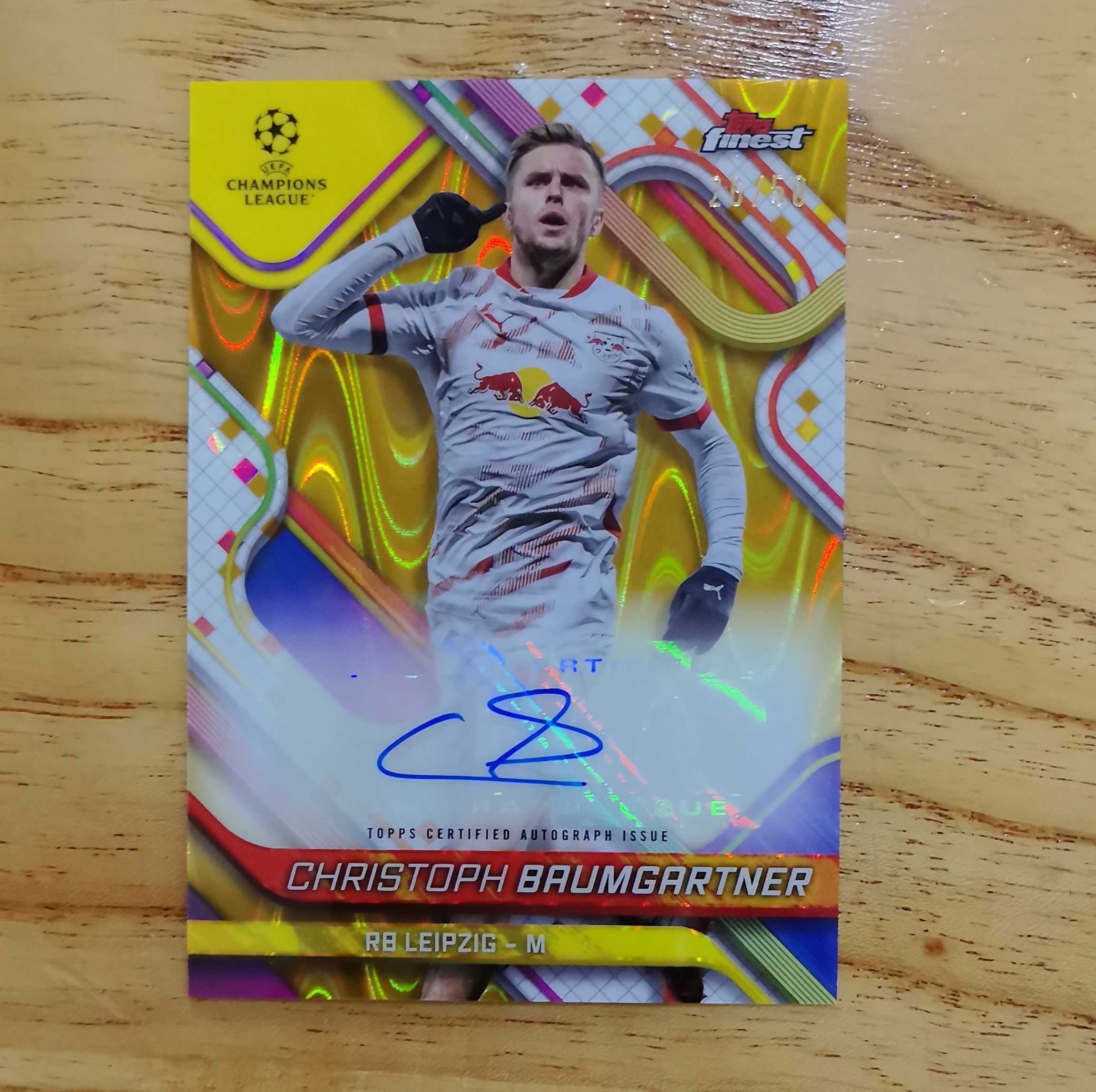 2025 Topps Finest Christoph Baumgartner 欧战Finest 莱比锡红牛 鲍姆加特纳 签字 签名 金折 折射 26/50编 收藏必备 卡品如图