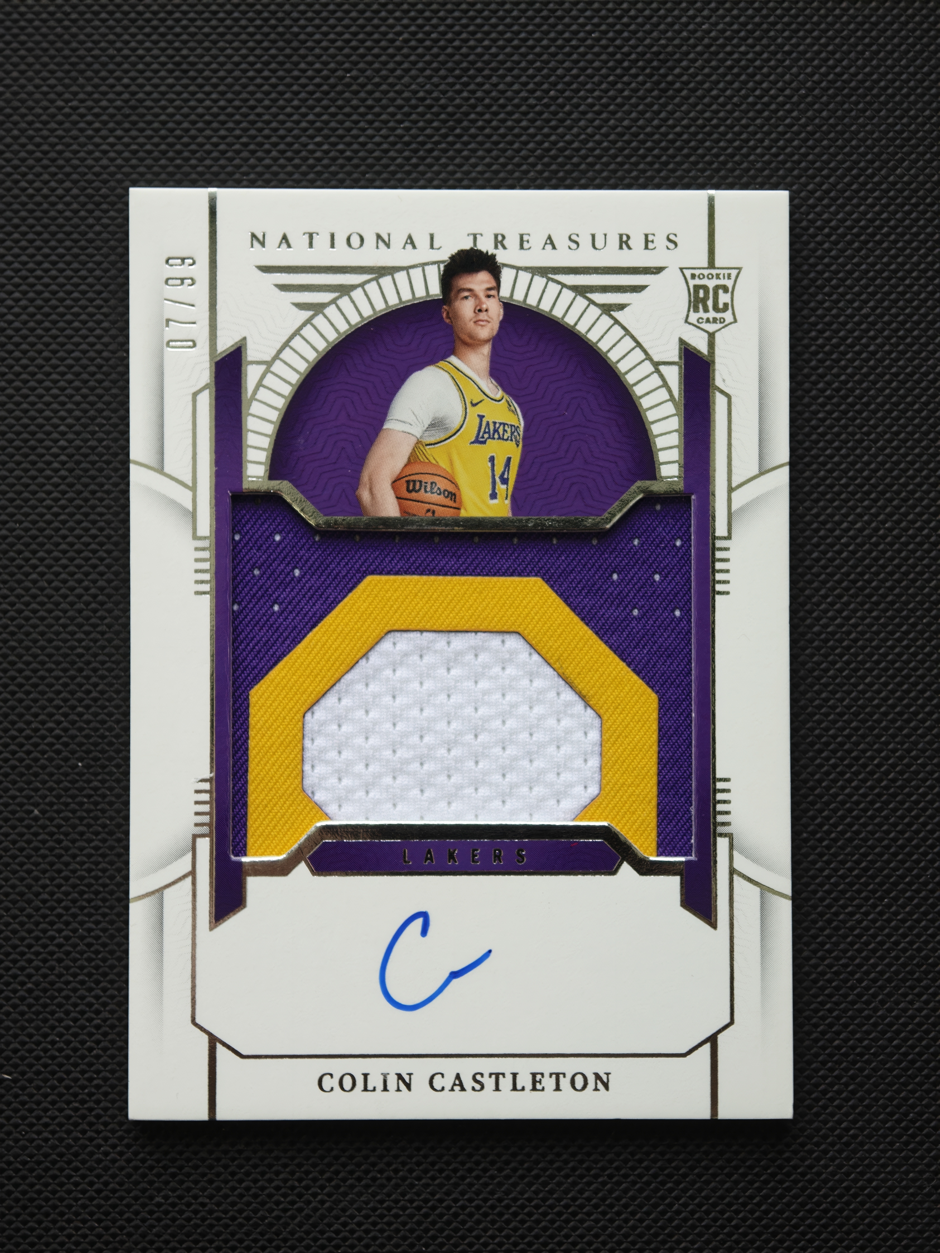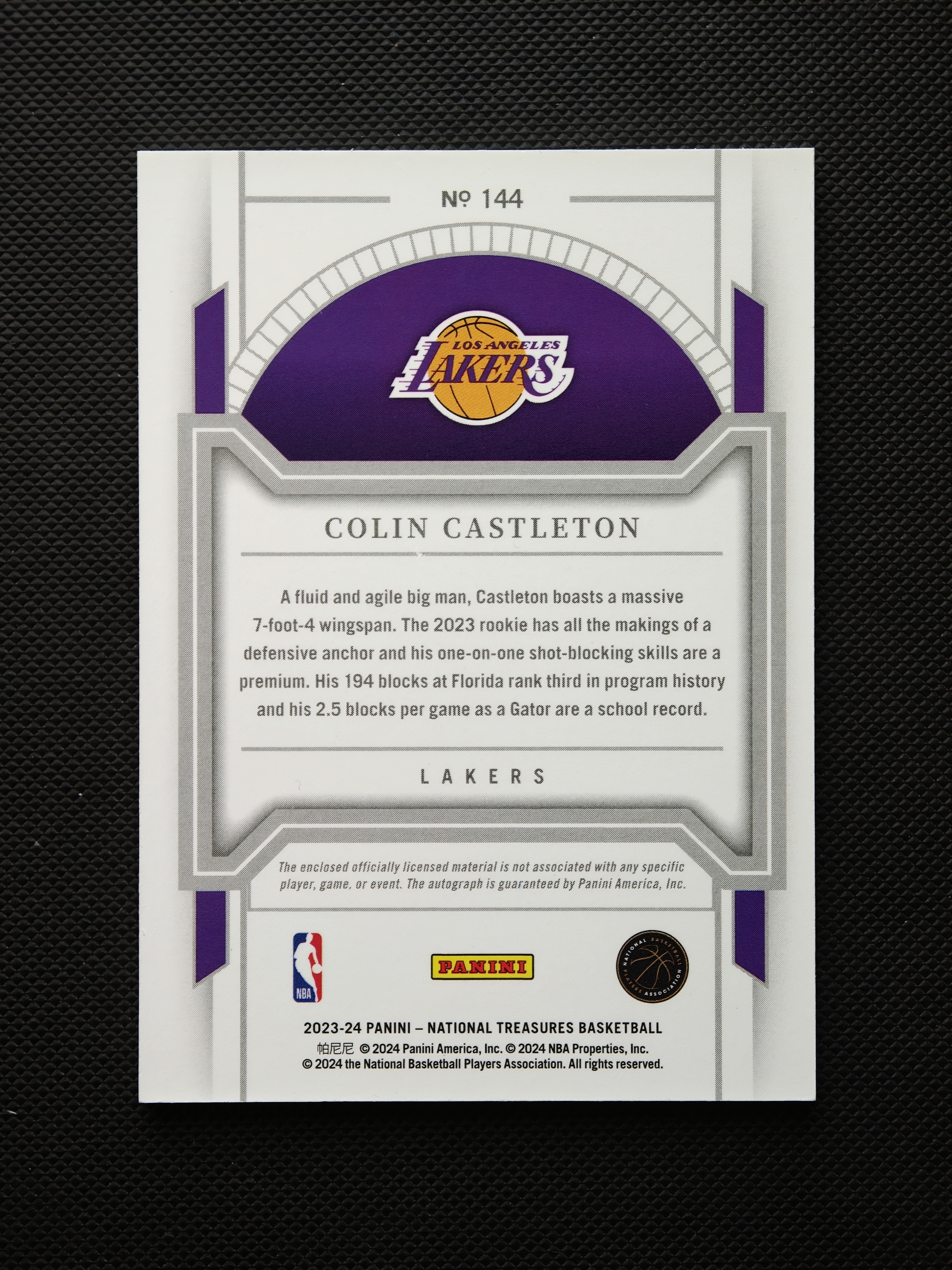 2023-24 Panini National Treasures Colin Castleton RC 刚签约魔术 湖人队新秀 科林 卡斯尔顿 99编国宝正RPA 亲笔卡签 三色球衣切割 细节如图