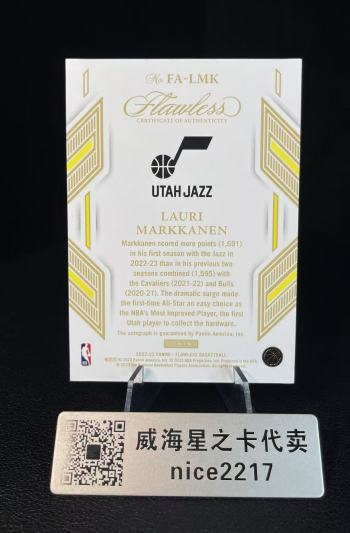 卡品:劳烦仔细看图!!!截标之前可找客服寻要细节照片或者细节视频,一旦出价默认接受卡品(不接受一系列没拍特写,自己没看仔细不想要等理由退换货)截标后不提供任何细节图!如无图片特殊展示瑕疵均为通行品相,一般prizm optic 等系列薄卡的小划痕印刷线,镜面有划痕属于正常品相,国宝IMM等系列厚卡的小白边小白角翘角钝角等,都属于通行品相。完美主义者请直接购买PSA10或者公博金标,发货之后不退不换(购卡的买家拆快递的时候也请拍开箱视频以便维护自己的权益)