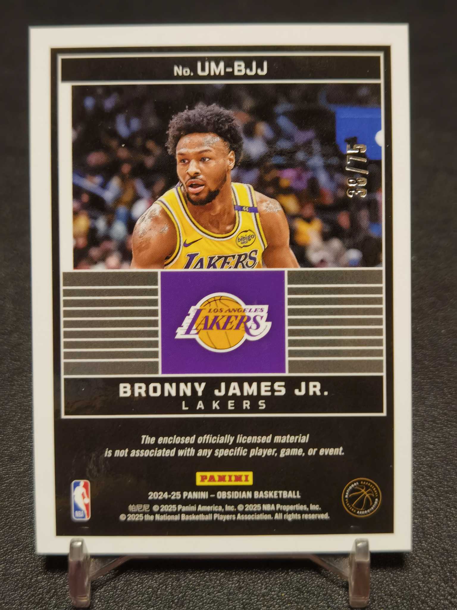 2024-25Panini 篮球黑曜石 Bronny James Jr. 布朗尼 詹姆斯 湖人 太子 新秀 RC 大窗物料 超暴力字母切割 紫折 75编 实卡精美 瑕疵如图!