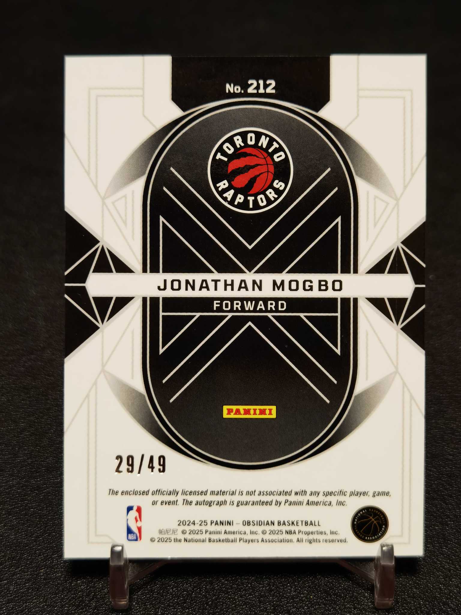 2024-25 Panini Obsidian Jonathan Mogbo RC 黑曜石 多伦多猛龙 乔纳森·莫博 新秀 RC 三色大窗 物料签字 粉平行 49编 卡品如图
