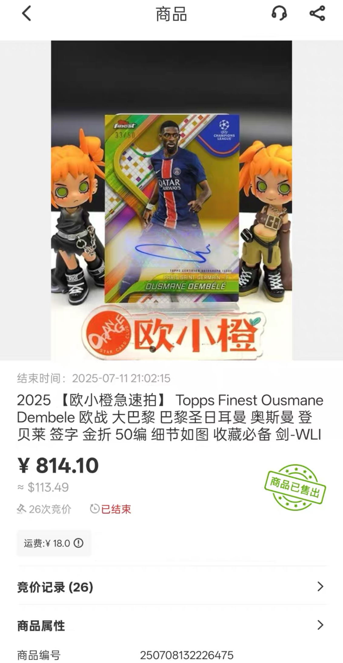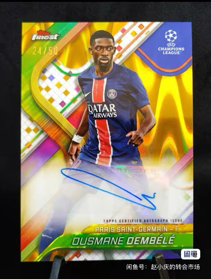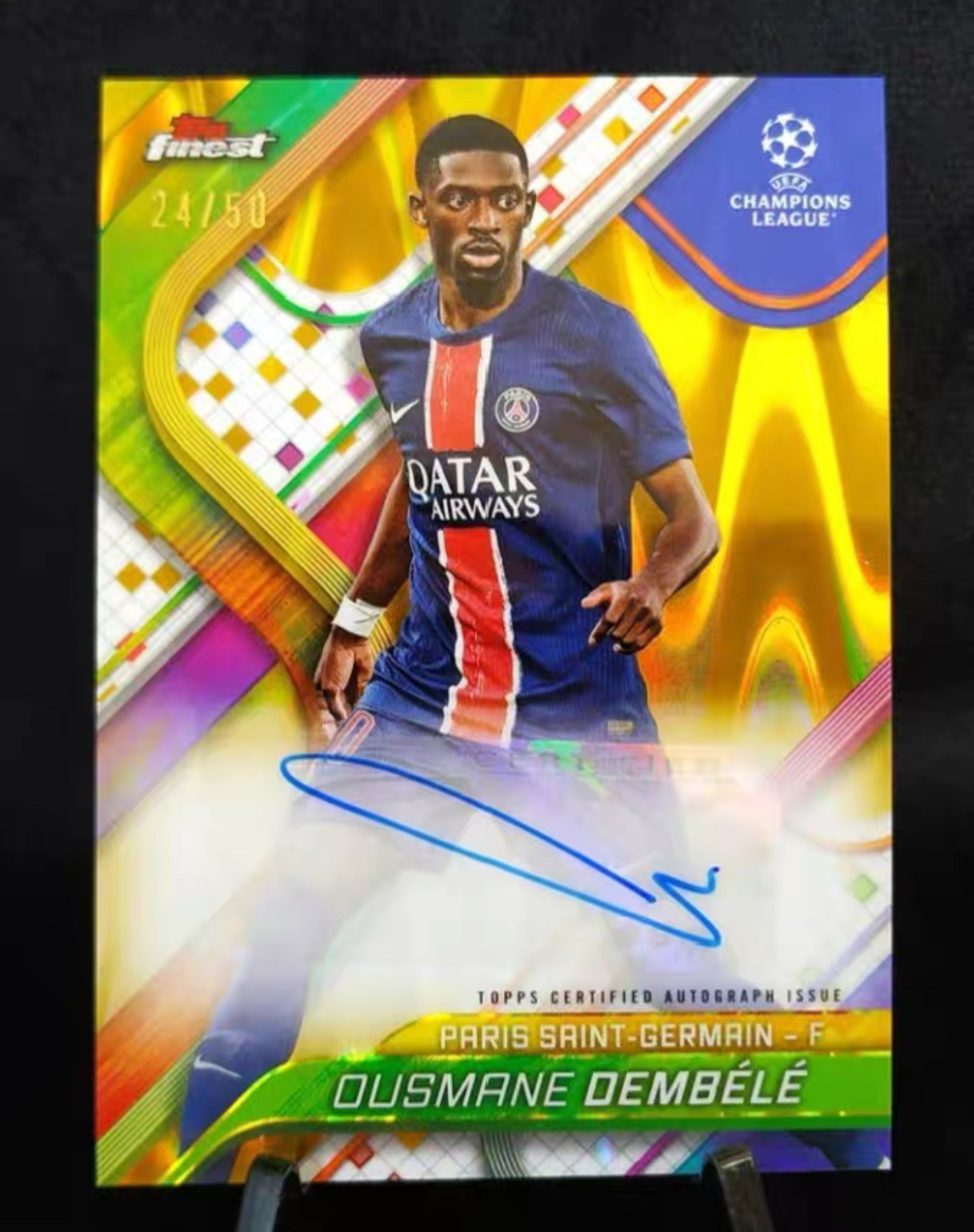 2024-25 Topps Finest Ousmane Dembélé 登贝莱 大巴黎 欧冠 签字 18/50编 金折 金球奖 欧冠冠军 金球先生 卡品如图 实卡精美 值得收藏 未来必涨