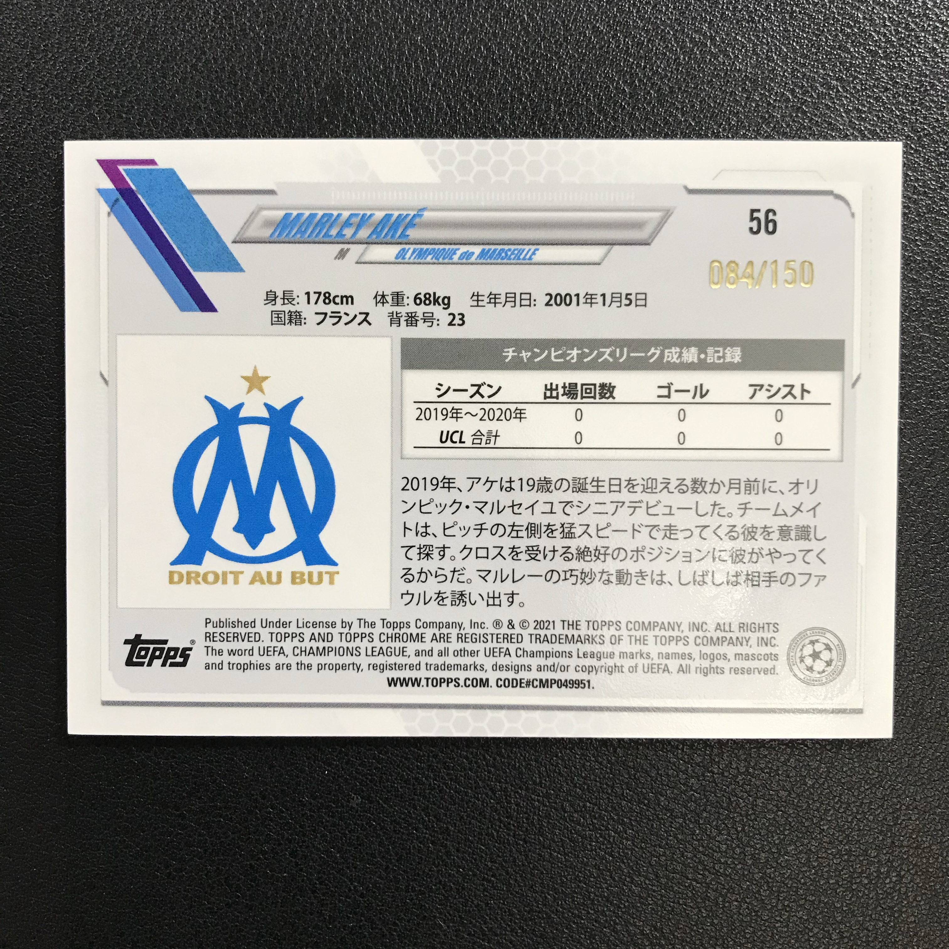 2020-21 Topps Chrome Marley Ake RC 欧冠 日版 樱花版 马赛 新秀 马利 阿克 黄mojo折 折射 Base 150编 极光