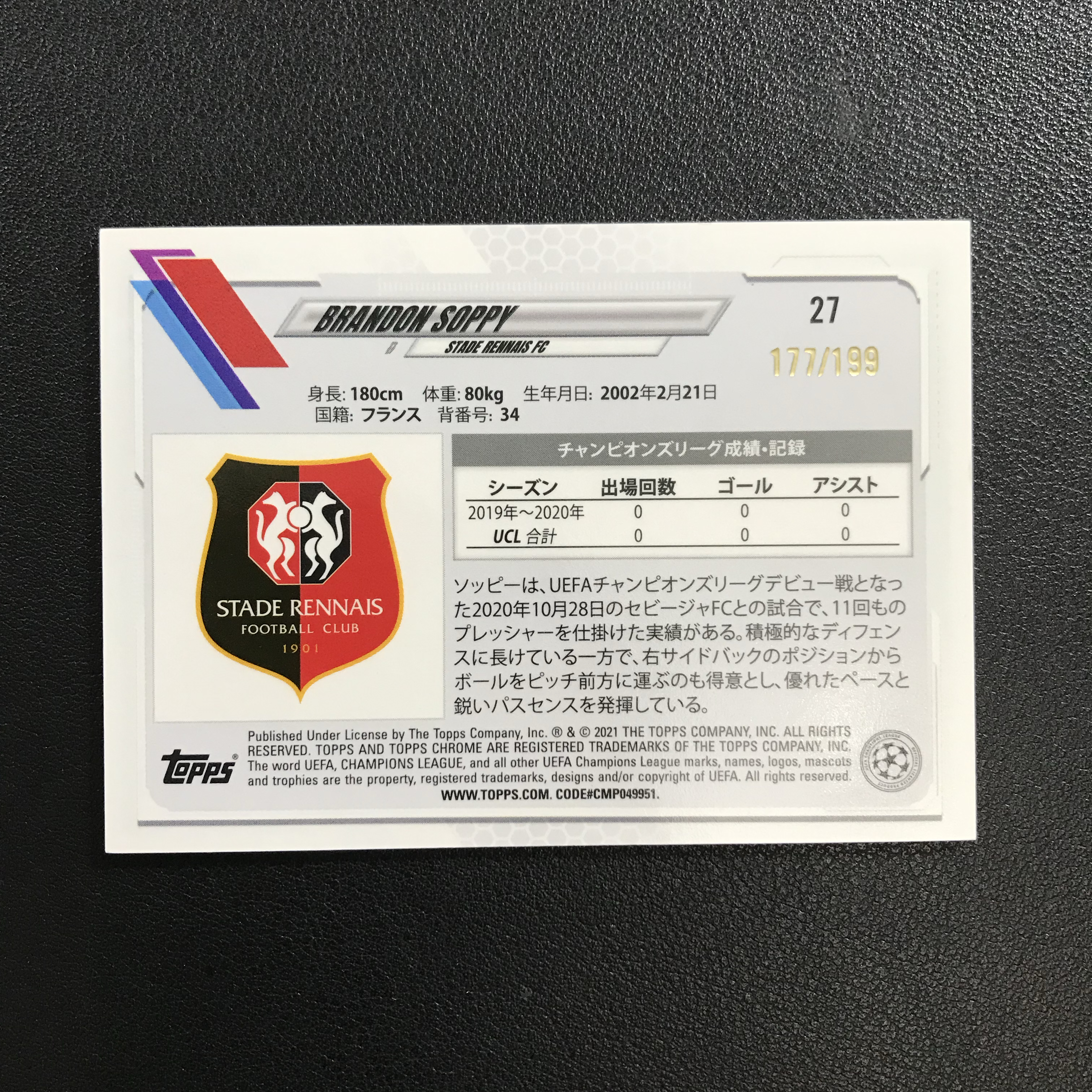2021 Topps Chrome Brandon Soppy RC 日版 樱花盒 雷恩 索比 新秀 199编 青迷宫折 收藏专收必备 瑕疵如图 足球 极光