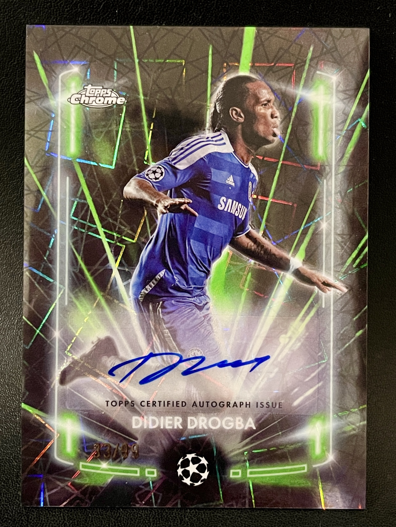 德罗巴 魔兽 2024-25 Topps Chrome欧冠 33/99编 绿镭射折 激光折 折射非常漂亮 亲笔签名 墨迹完美 切尔西名宿 非洲刘德华 值得收藏!