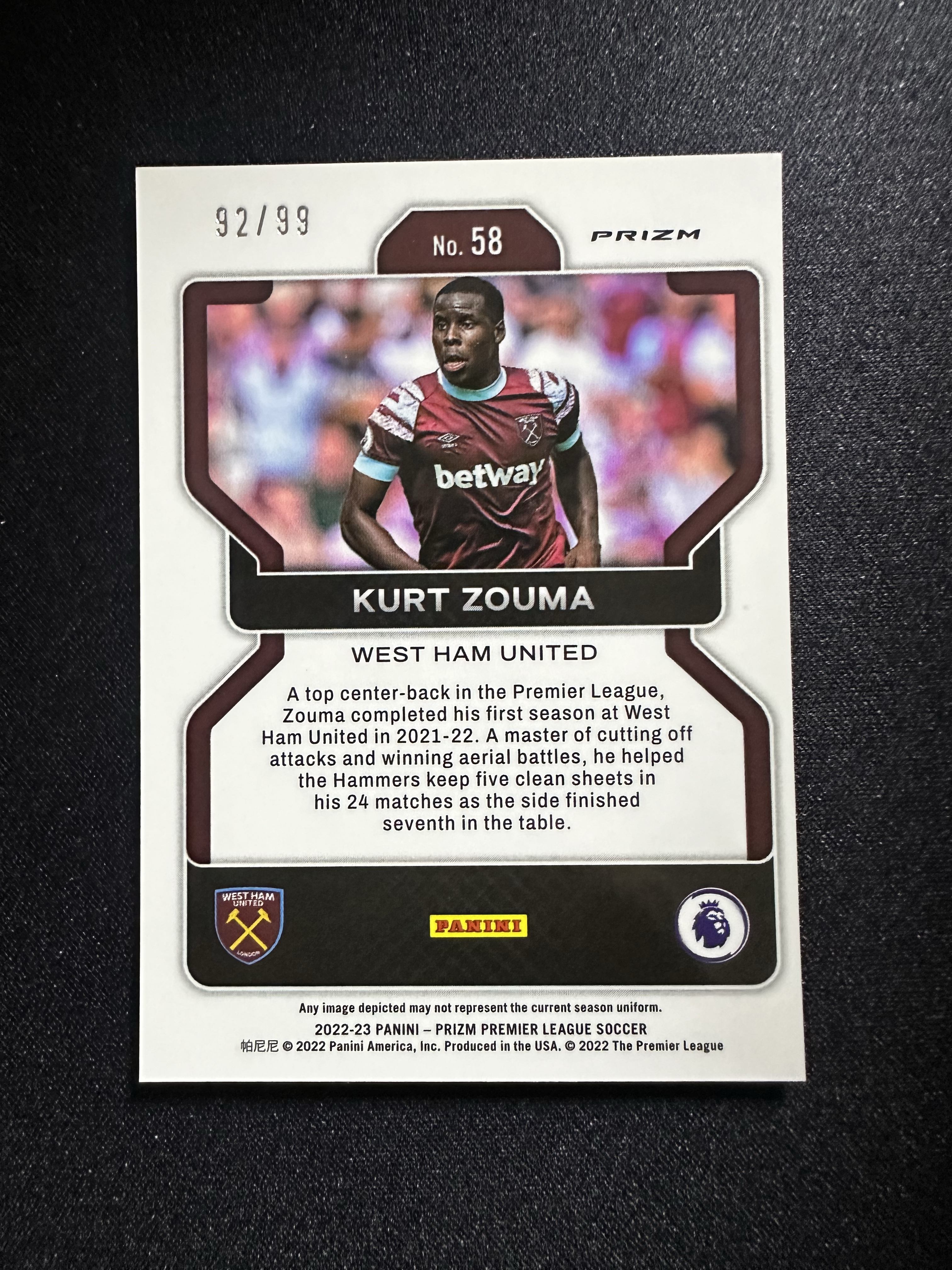 2022-23 Topps Prizm Kurt Zouma prizm英超 西汉姆联 祖马 99编 卡片精美 收藏必备 刺客-落枫