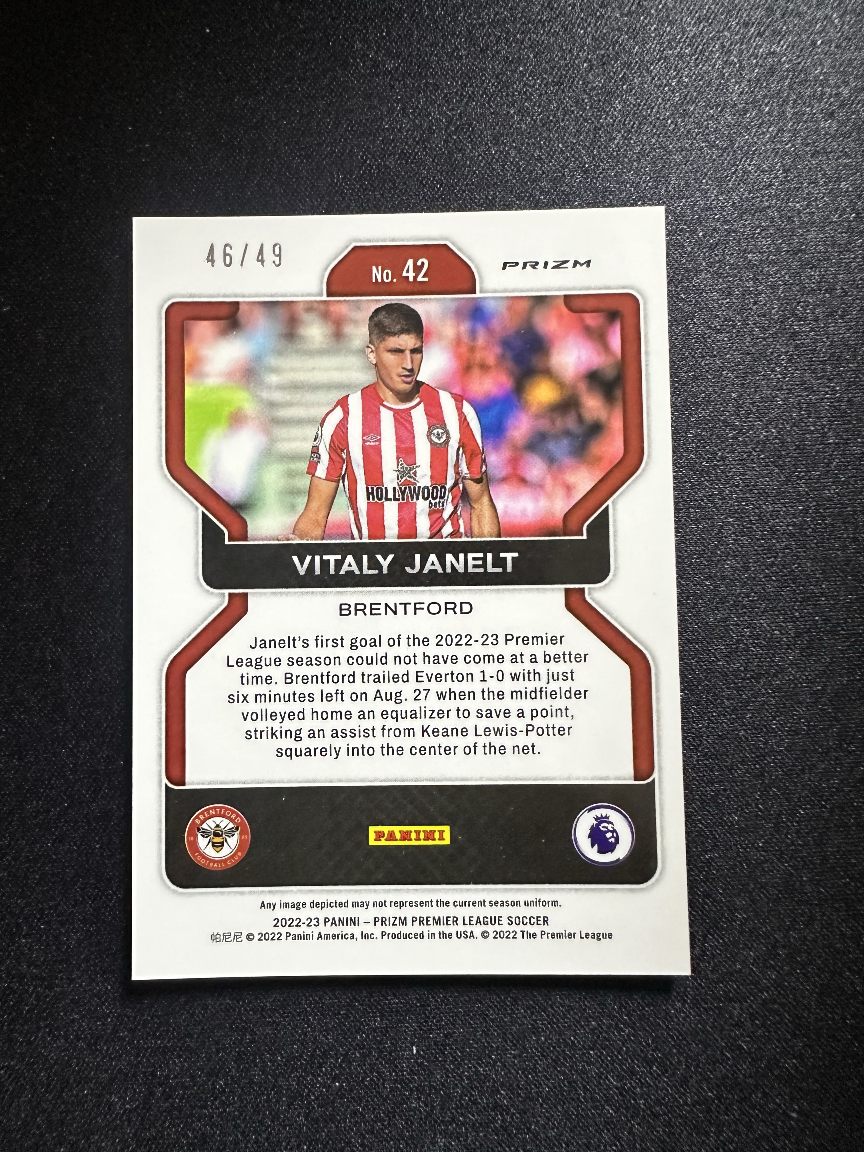 2022-23 Topps Prizm Vitaly Janelt prizm英超 布伦特福德 雅内尔特 49编 卡片精美 收藏必备 刺客-落枫