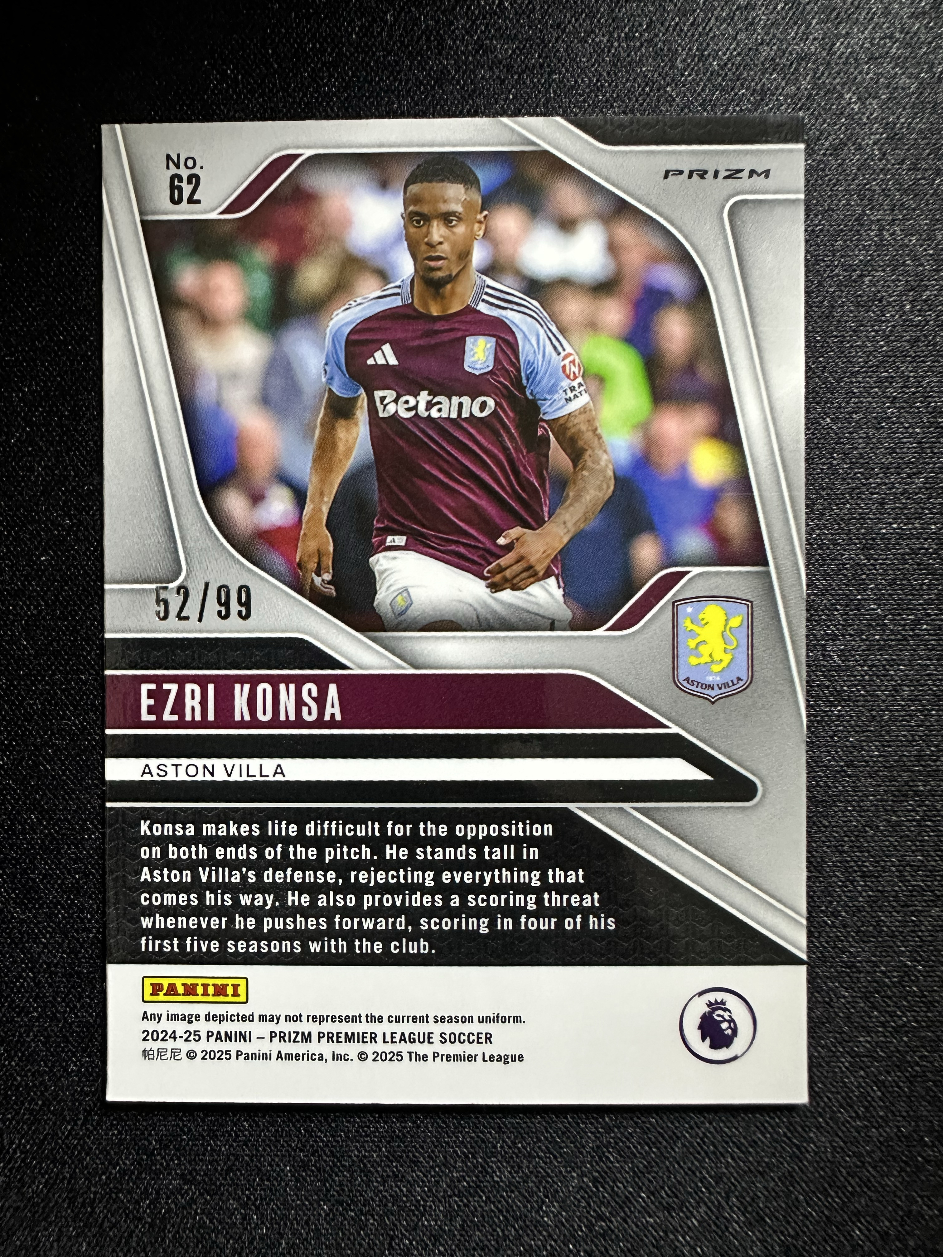 2024-25 Topps Prizm Ezri Konsa prizm英超 阿斯顿维拉 孔萨 99编 卡片精美 收藏必备 刺客-落枫