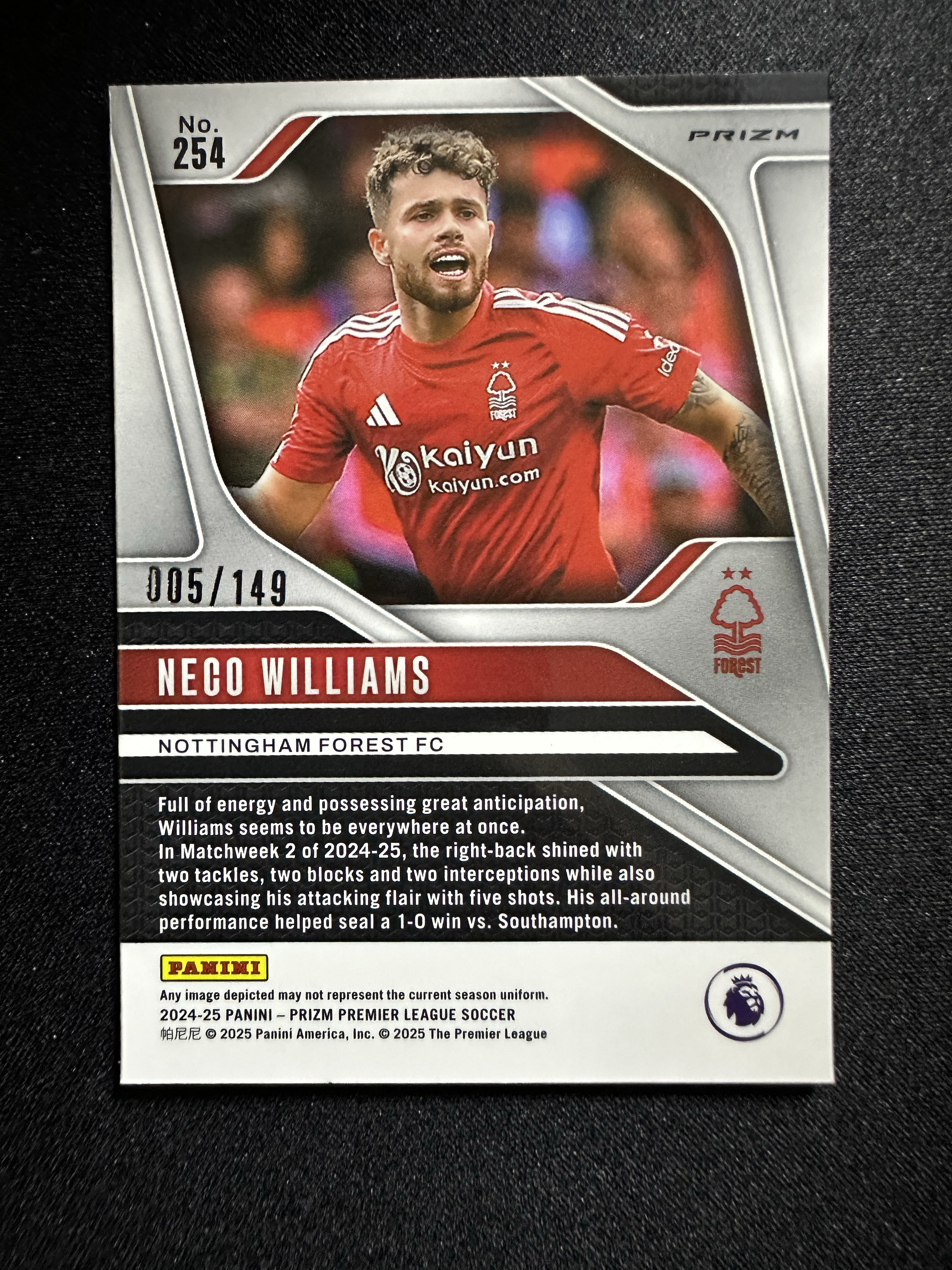 2024-25 Topps Prizm Neco Williams prizm英超 内科 威廉姆斯 149编 卡片精美 收藏必备 刺客-落枫