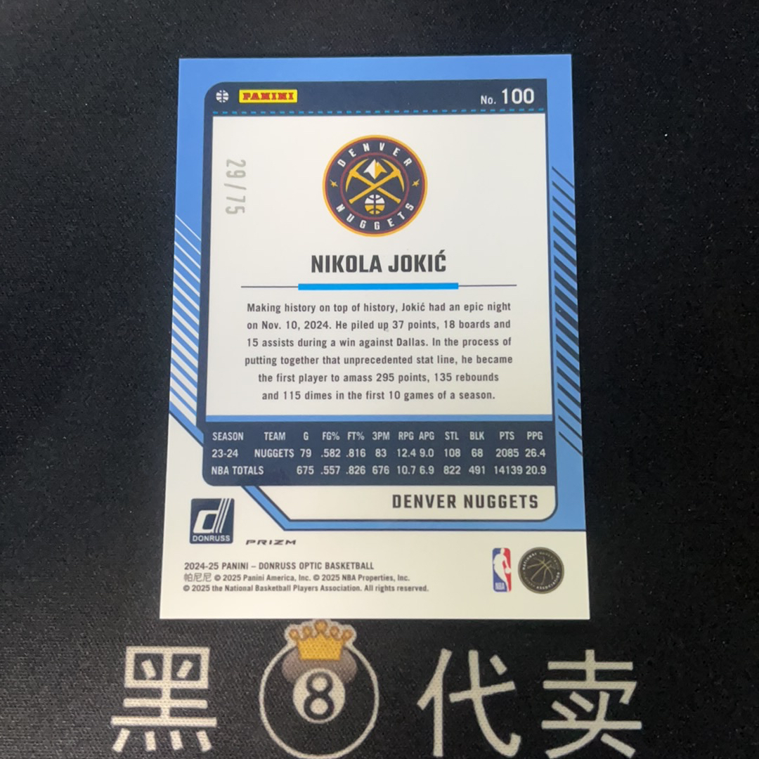 99【黑8代卖】2024-25 Panini Donruss Optic 杜蕾斯Op Nikola Jokic 尼古拉 约基奇 黑金圈圈折 29/75编 折射 卡品如图【zzb】