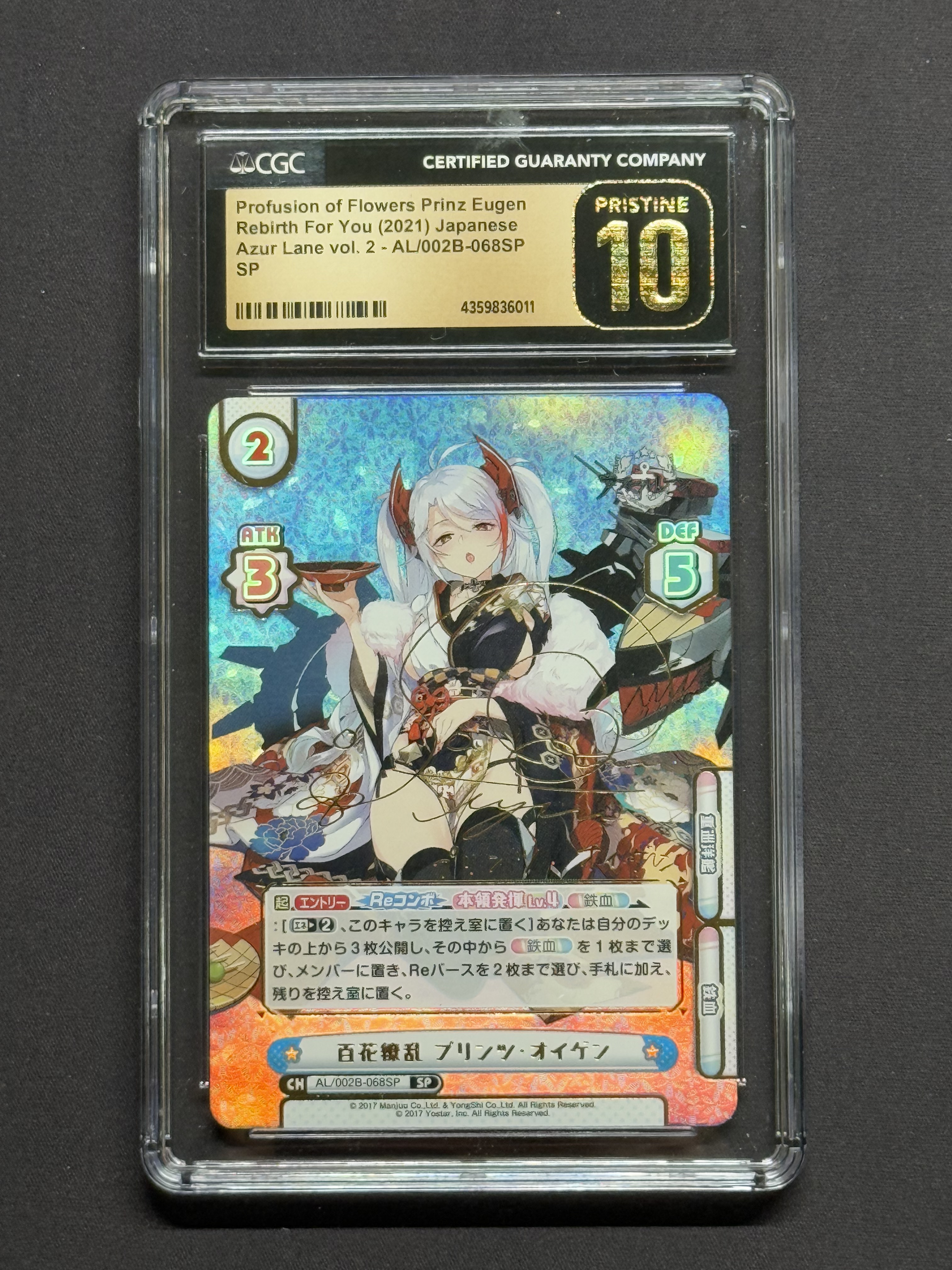 2021 Rebirth for You Azur Lane Vol.2 欧根亲王 ja 碧蓝航线第2弹 日文 百花缭乱 欧根亲王 闪卡 声优烫金签字卡 SP印签角色妹卡 黑金CGC10「老夫子」爆炸