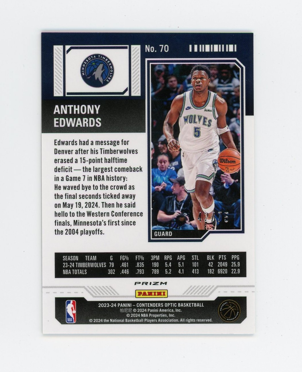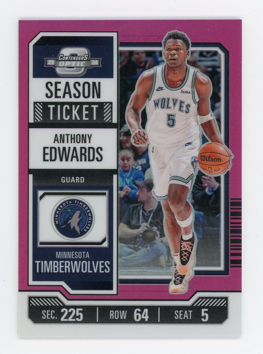 2023-24 Panini Contenders Optic Basketball Anthony Edwards Season Ticket Pink Prizm #'ed 42/75