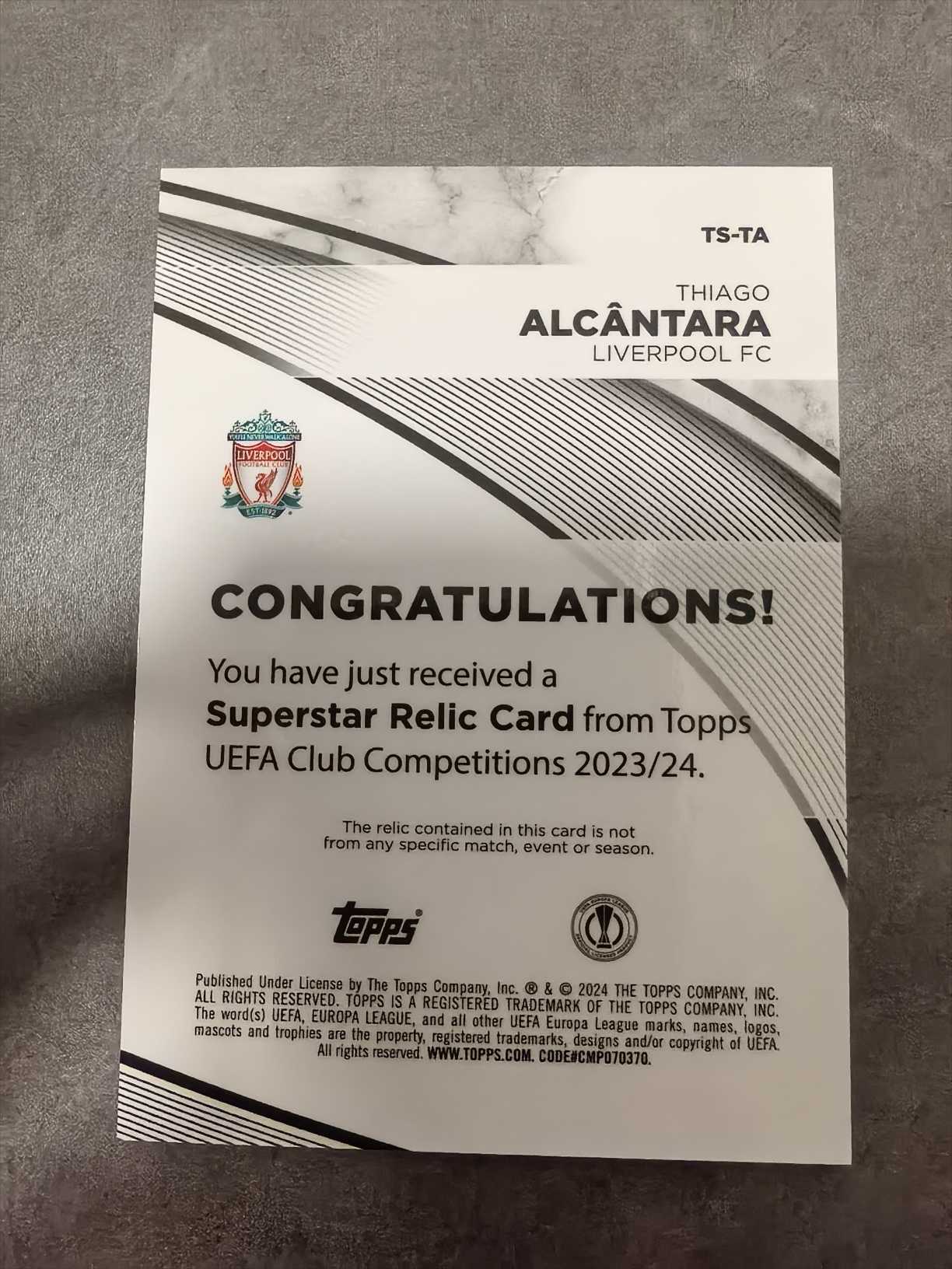 2023-24 Topps Euroleague Thiago 西班牙 巴萨 利物浦 拜仁。主力中场蒂亚戈 红色球衣切割。