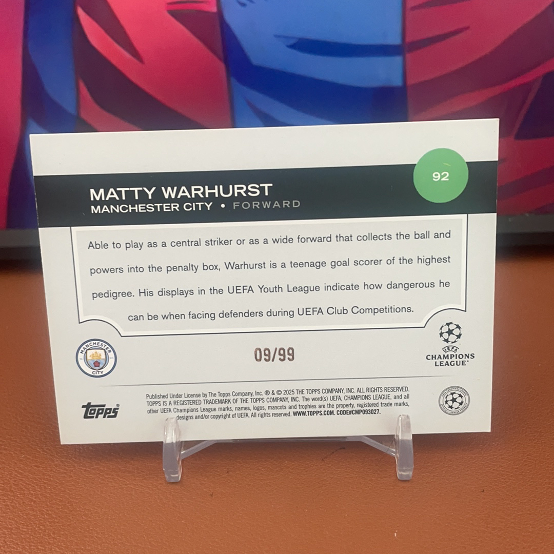 2025 Topps Ucc Matty Warhurst RC 沃赫斯特 9/99 绿折 欧冠 英格兰 曼城 未来可期 收藏品 卡品如图(淼淼)通品 拍前看描述