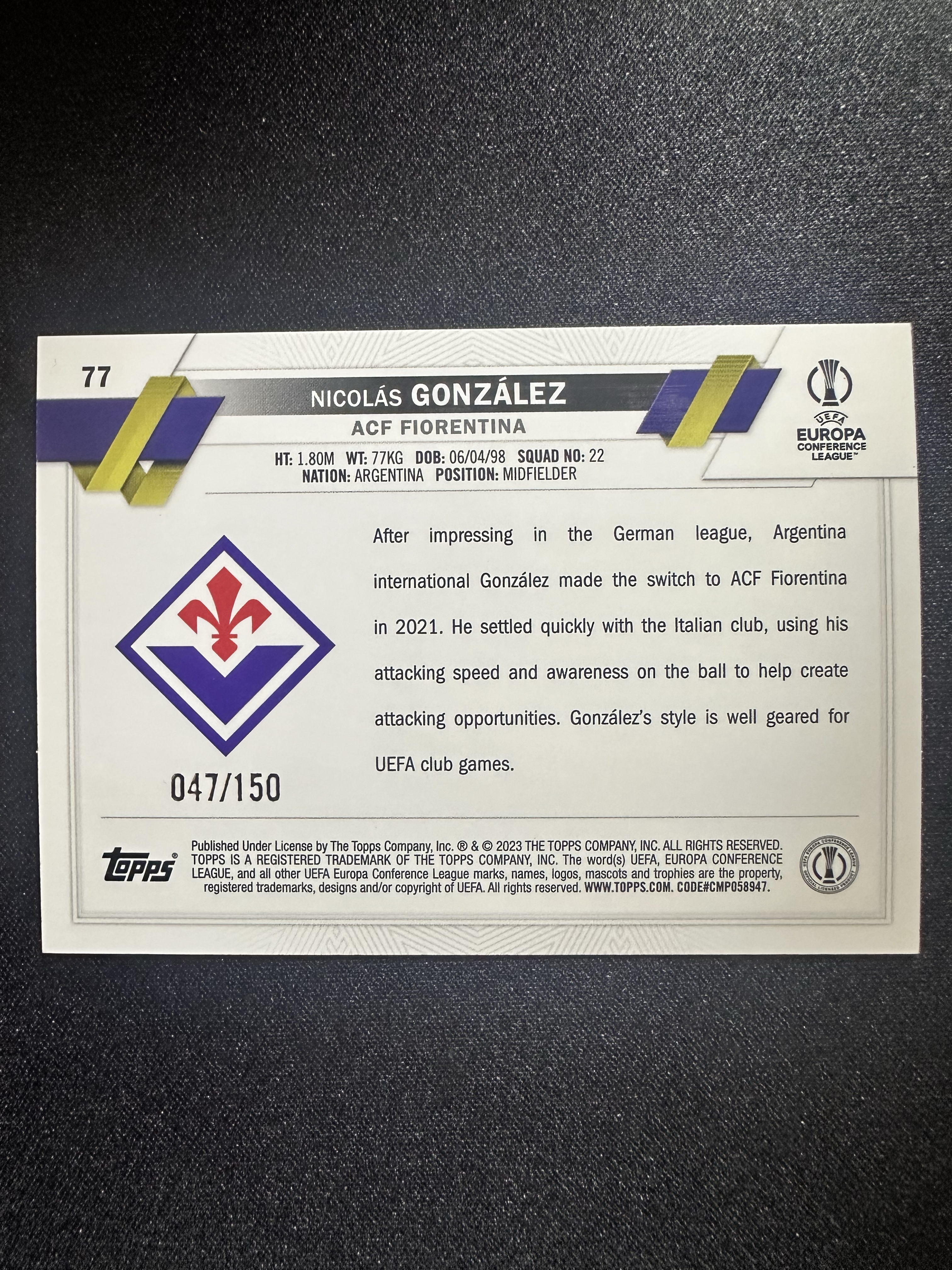2022-23 Topps UEFA Champions League Nicolás González 欧冠碧玉 佛罗伦萨 尼古拉斯 冈萨雷斯 150编 卡片精美 收藏必备 刺客-落枫