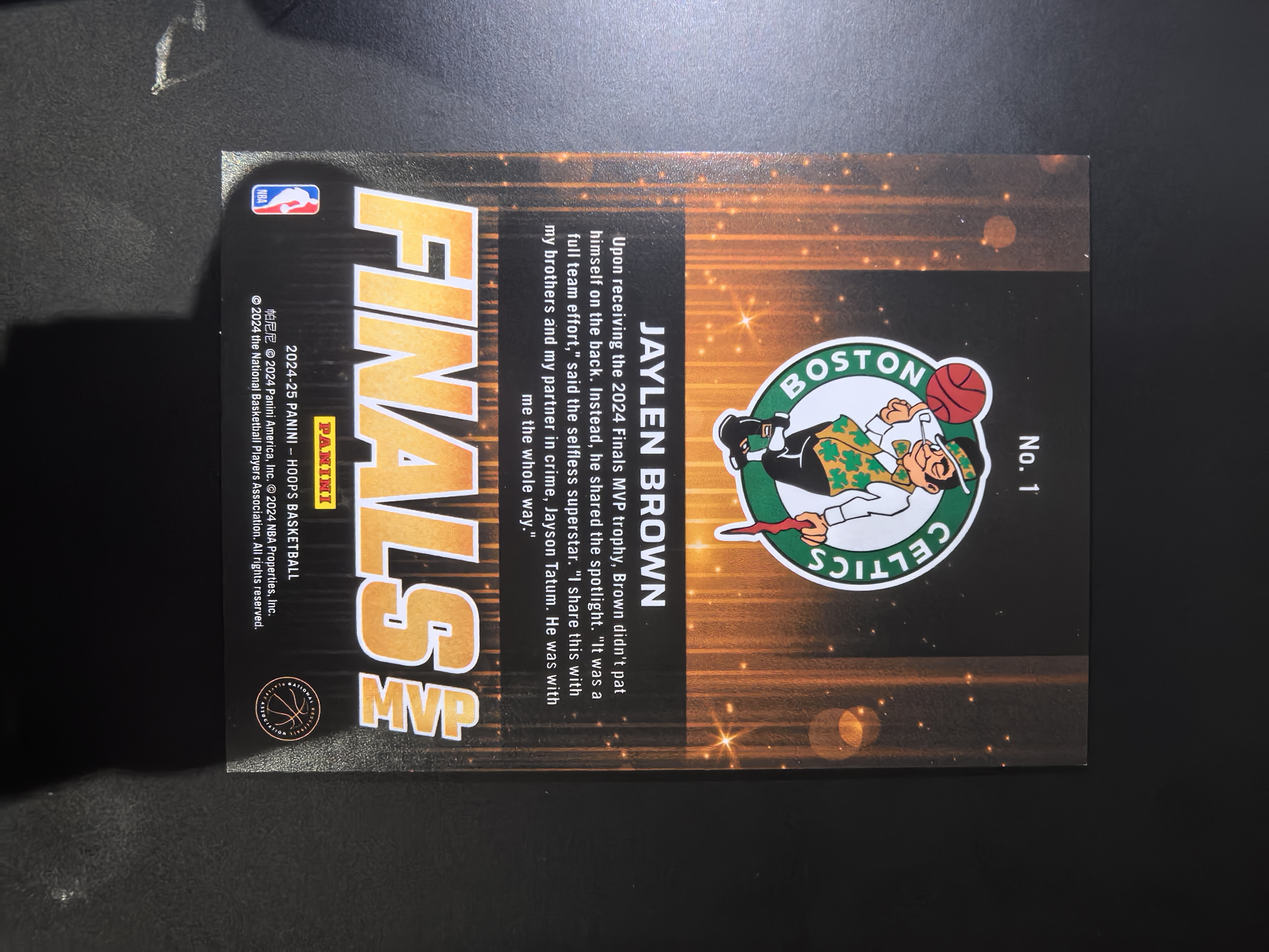 2024-25 Panini hoops Jaylen Brown 【梦里拍卖】凯尔特人 杰伦布朗 FMVP捧杯特卡 折射 49/99编 收藏必备 <檬>