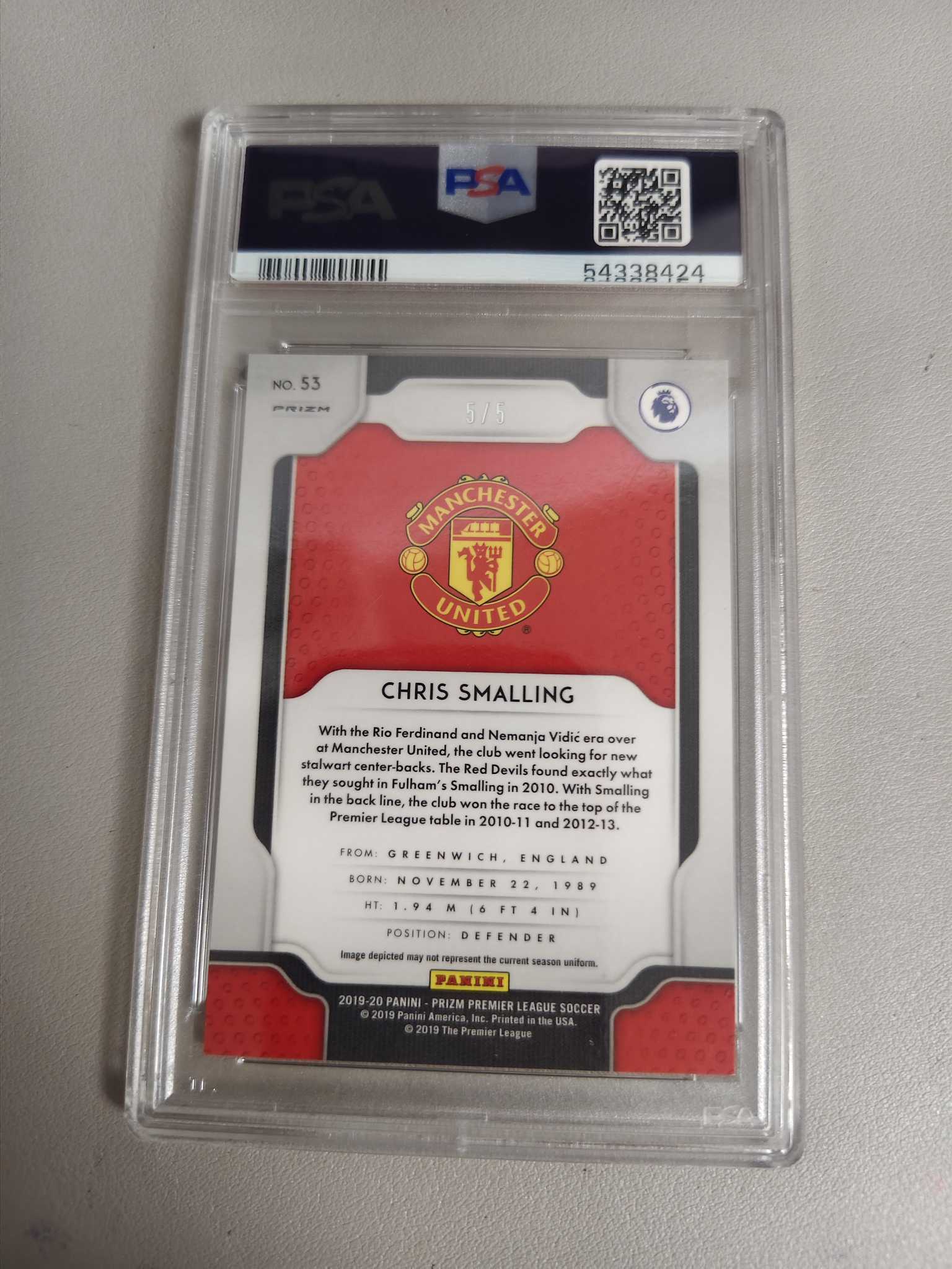 【佩妮拍卖】2020-21 Panini Prizm 英超 CHRIS SMALLING 曼联 克里斯 斯莫林 爆金 5/5编 PSA评级9分 卡品如图 拍前请阅读描述 霏霏0925