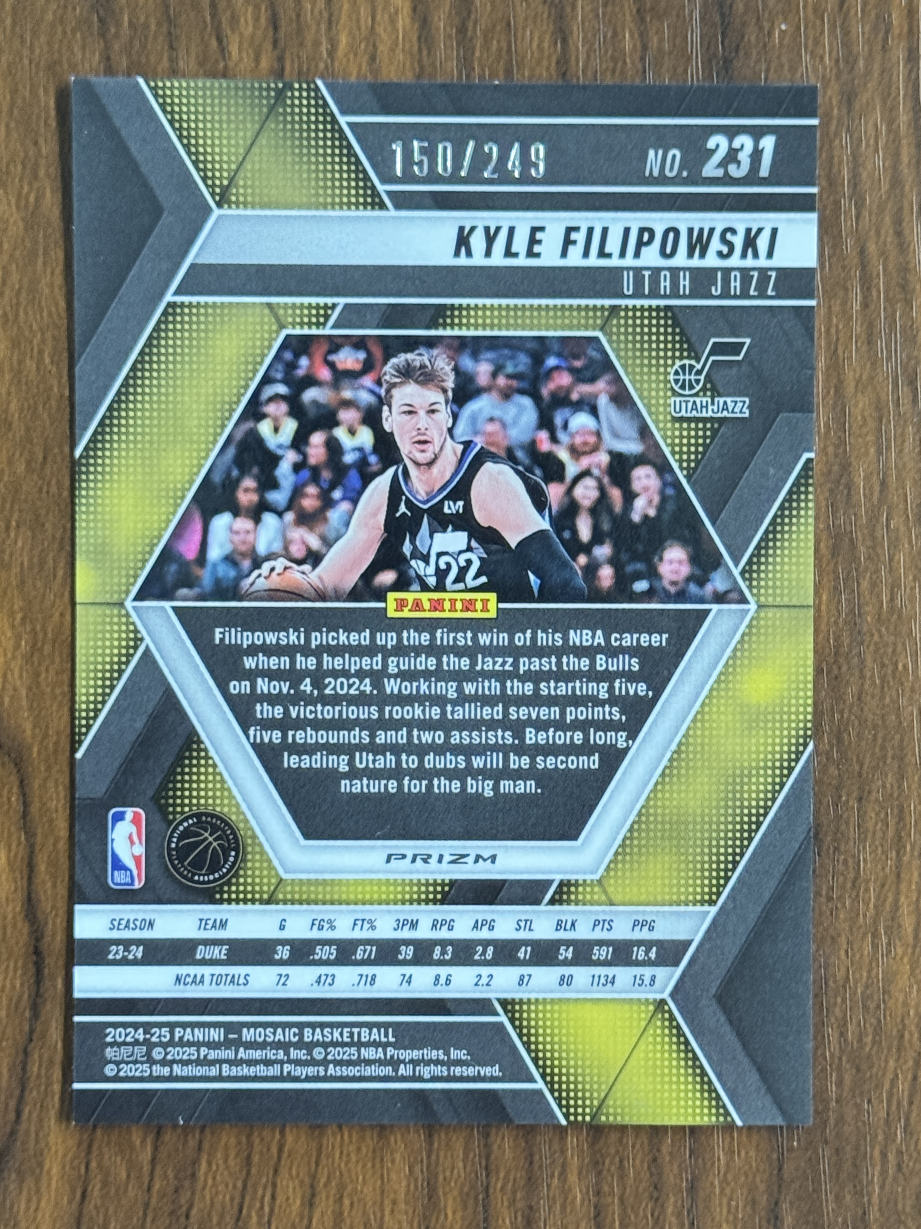24-25 马赛克 Mosaic 爵士队 Kyle Filipowski 菲利波夫斯基 150/249编 紫色折 新秀 rc