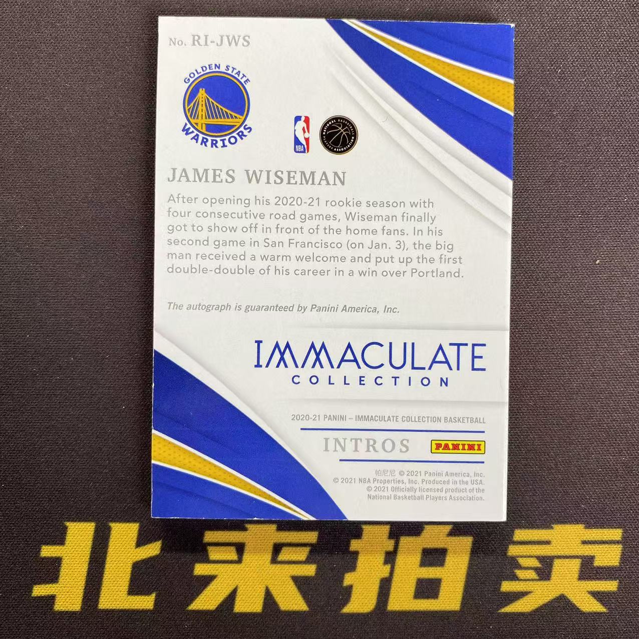 2020-21 Panini IMM James Wiseman RC 【北来拍卖】W1 爱咪咪 詹姆斯 怀斯曼 勇士 新秀 介绍签 卡签 签字 49编 闪版 卡品如图【飞机哥】695#