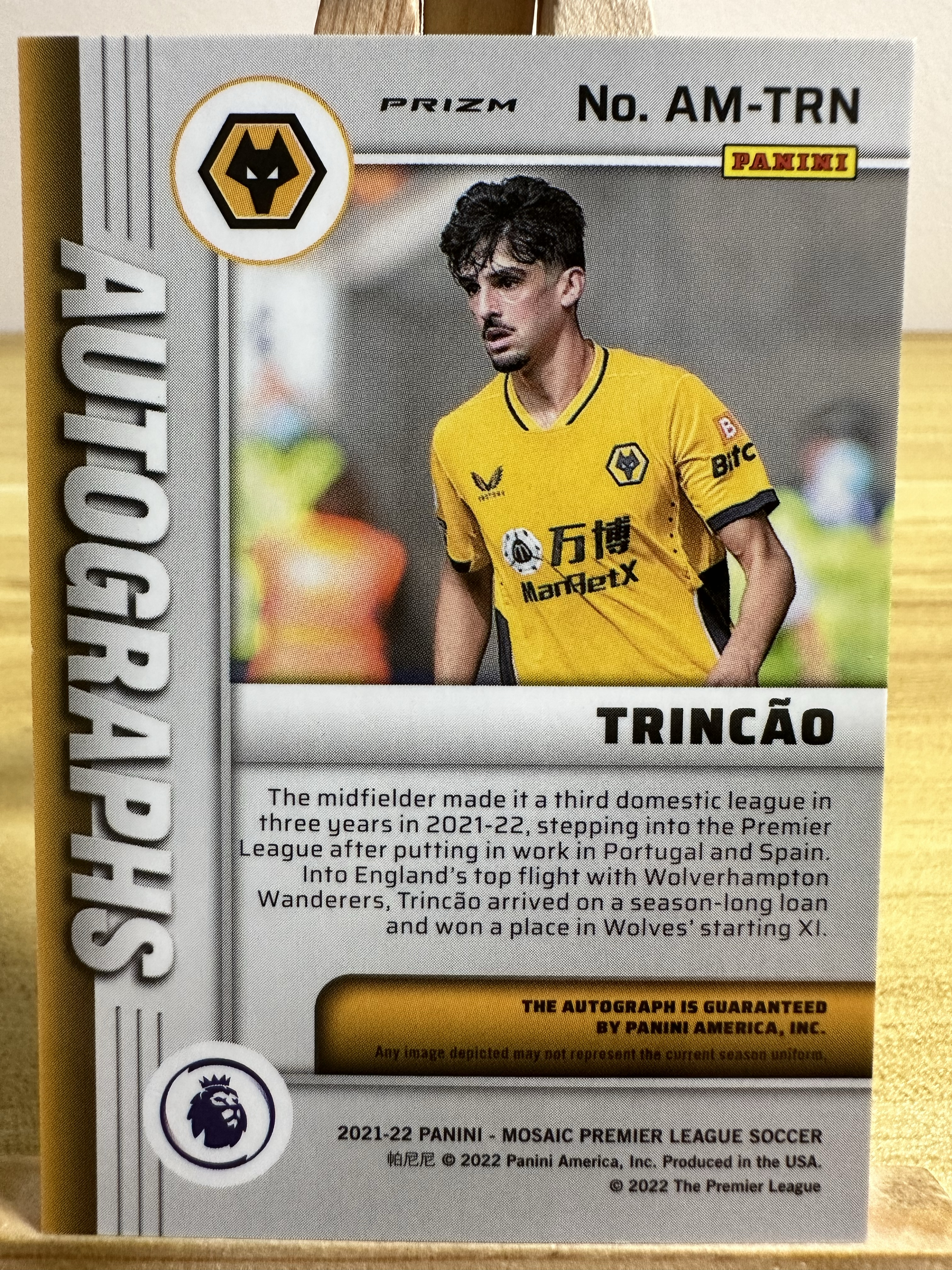 2021-22 Panini Mosaic Trincao 英超 狼队 特林康 马赛克 签字 银马赛克 折射 d5