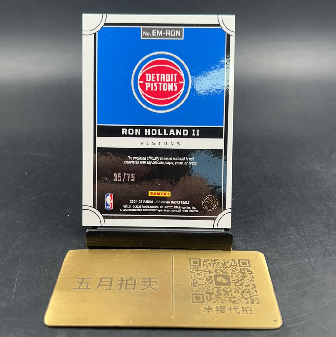 2024-25 Panini Obsidian Ron Holland RC 【五月拍卖顺丰空运】黑曜石 罗恩 霍兰德 球衣 物料 patch 75编 折射 微瑕 寿光12