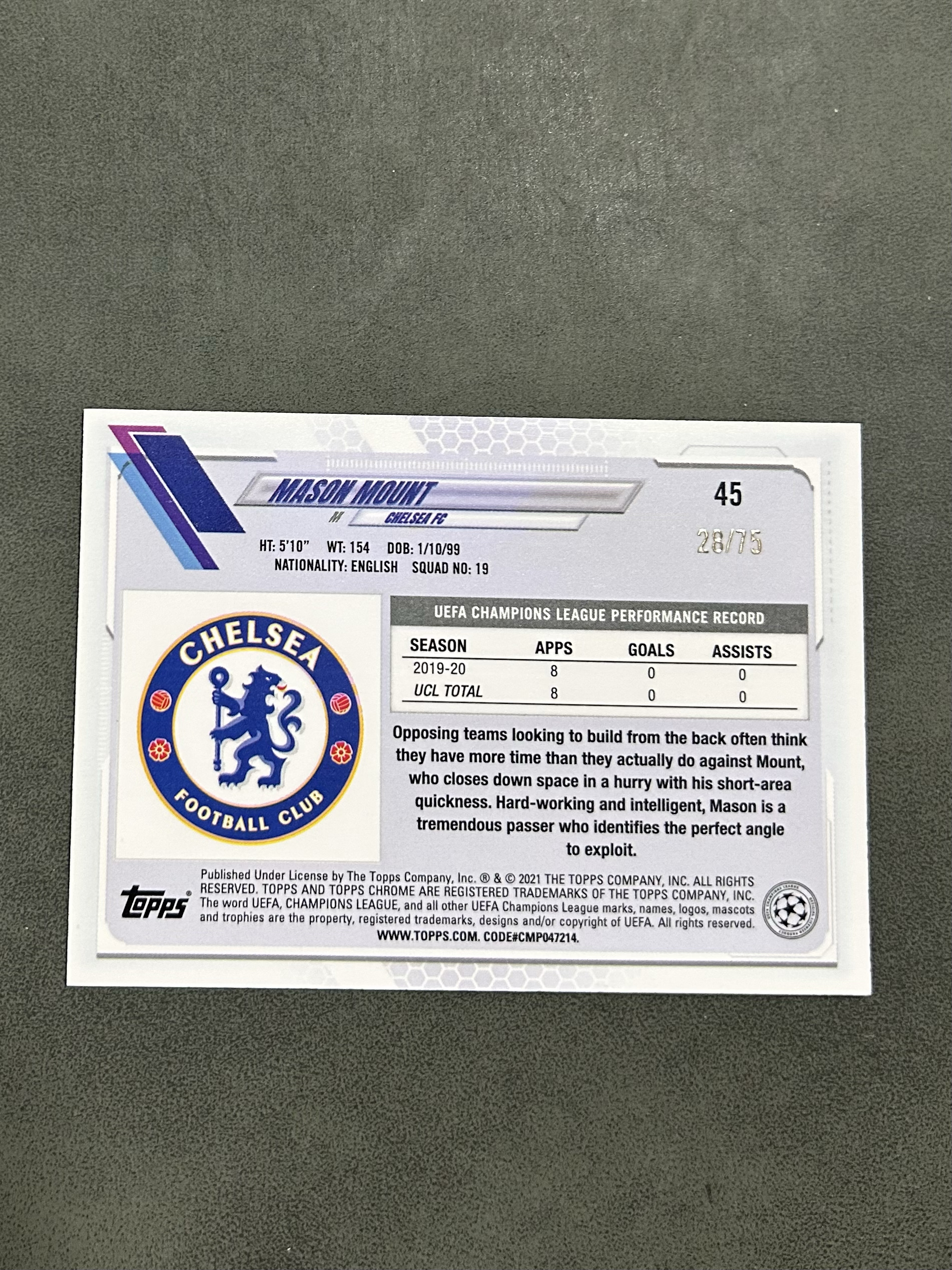 2020-21 Topps Chrome Mason Mount 梅森 芒特 75编 28/75 绿碎冰 绿宝石 曼联 切尔西 英格兰 欧冠冠军 红魔 欧冠 蓝宝石Sapphire