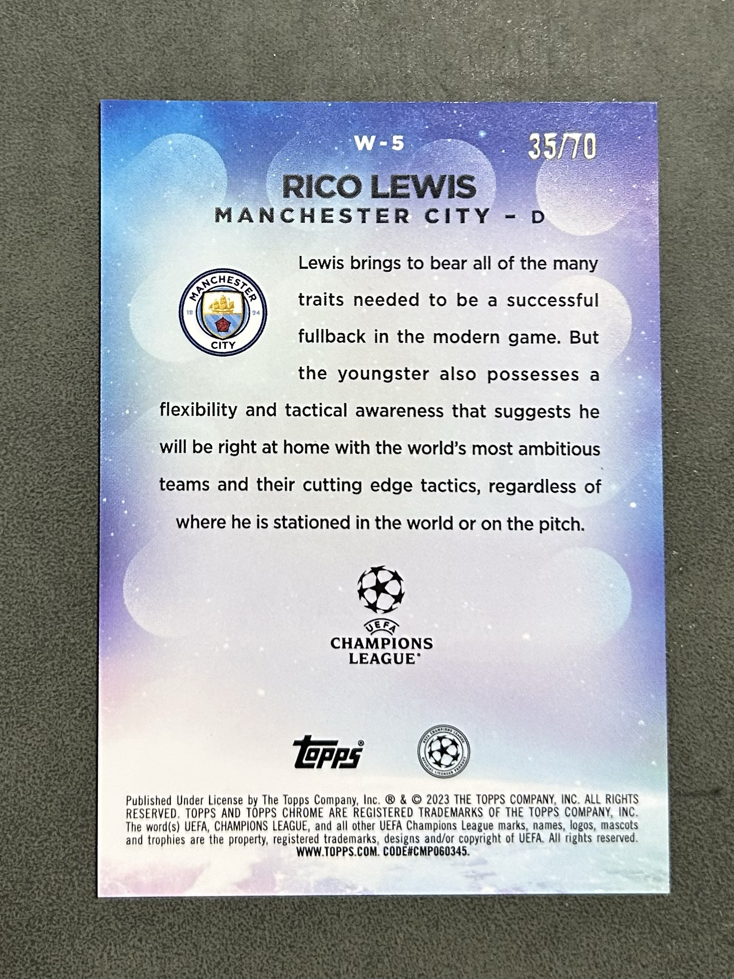 2022-23 Topps Chrome Rico Lewis RC 里科 刘易斯 新秀 /70编 绿碎冰折 曼城 英格兰国家队 蓝宝石 Sapphire