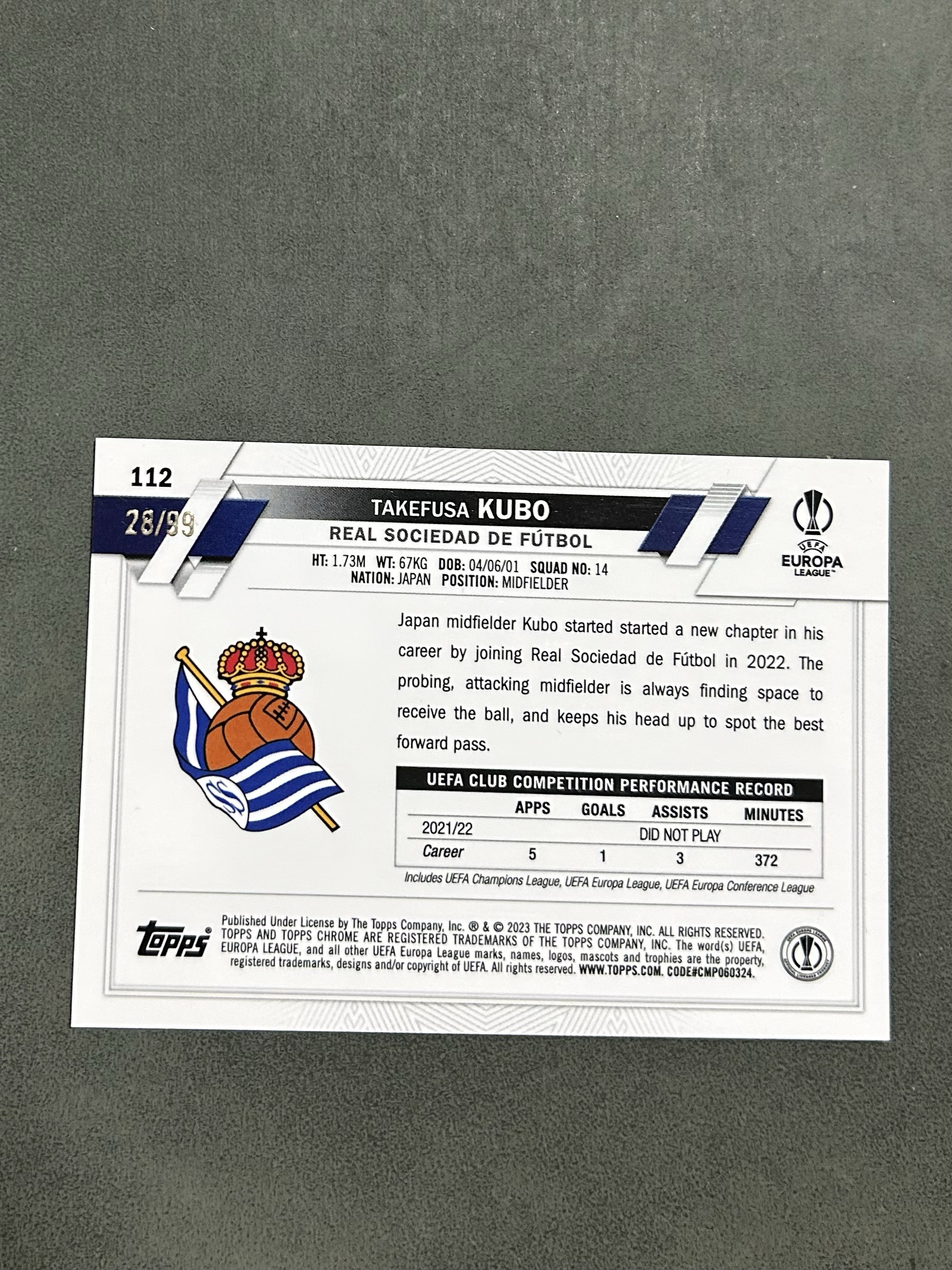 2022-23 Topps Chrome Takefusa Kubo 欧冠 蓝宝石 Sapphire 久保建英 /99编 黄碎冰折 日本 西甲 皇家社会 前锋 队长 核心