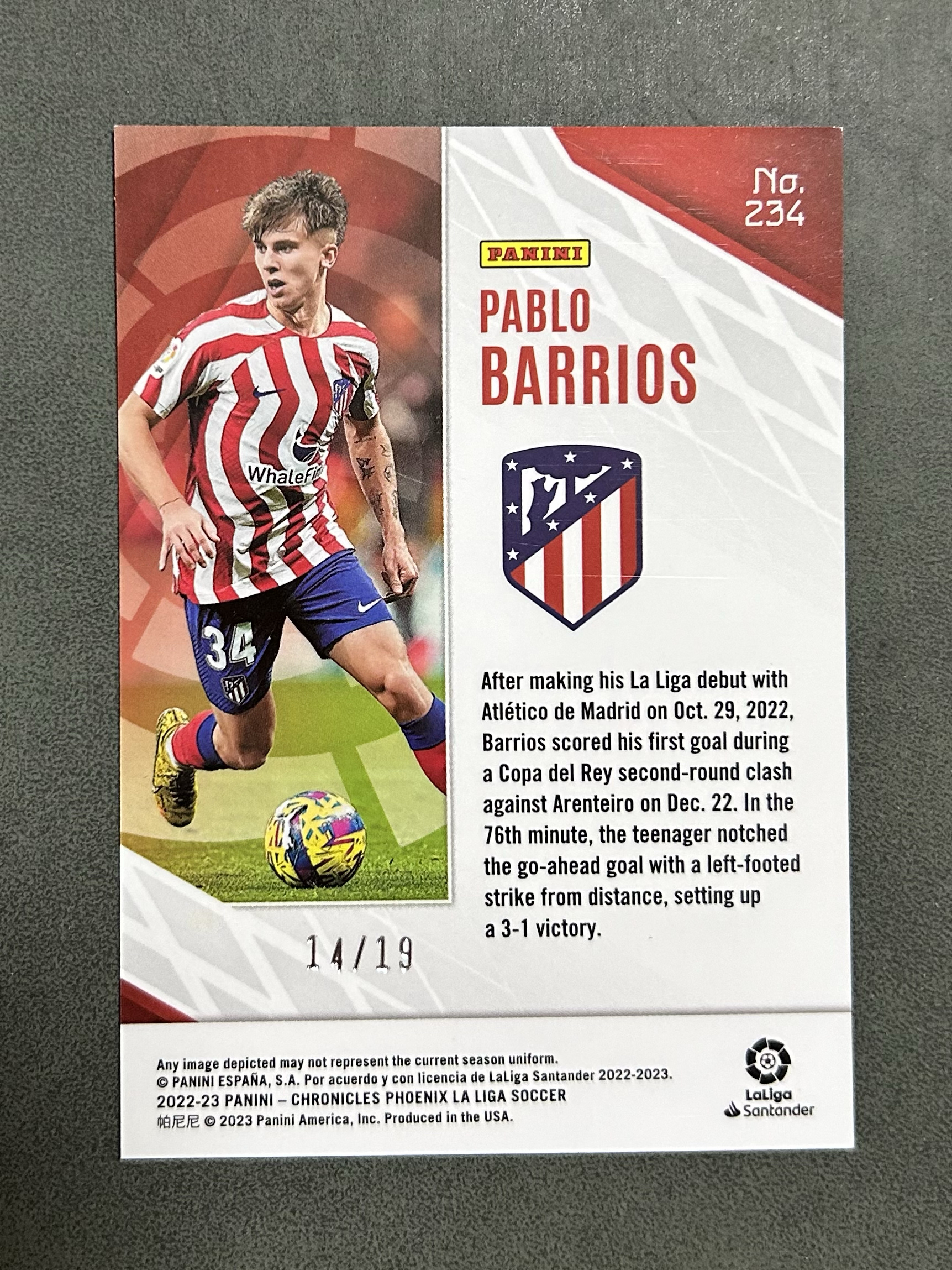 2022-23 Panini Chronicles Pablo Barrios RC 新秀 巴里奥斯 马竞 /19编 粉波纹 凤凰特卡 西班牙 亚马尔
