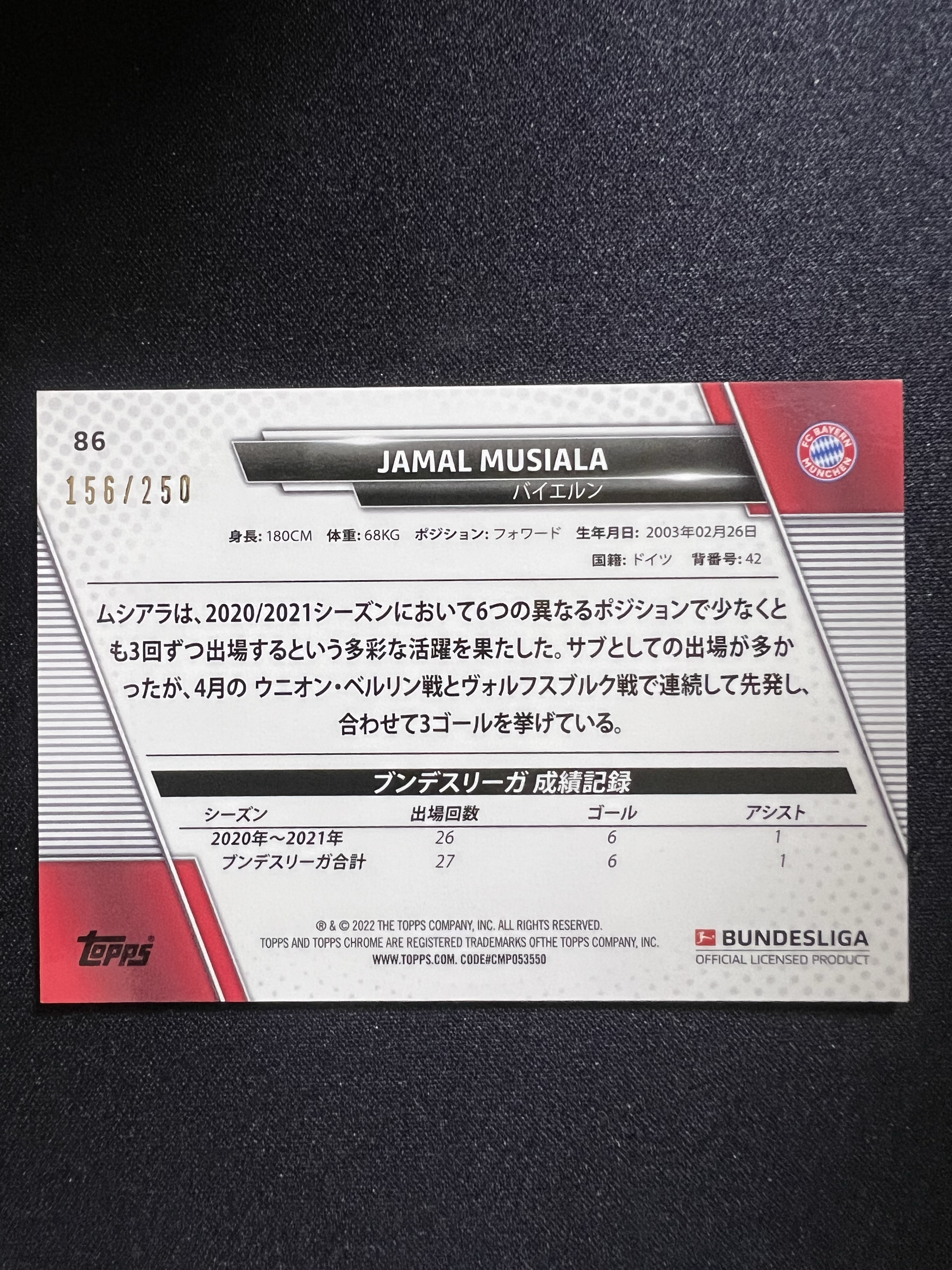 2021-22 Topps Chrome Jamal Musiala 德甲Chrome 樱花 拜仁慕尼黑 穆夏拉 250编 卡片精美 收藏必备 刺客-落枫