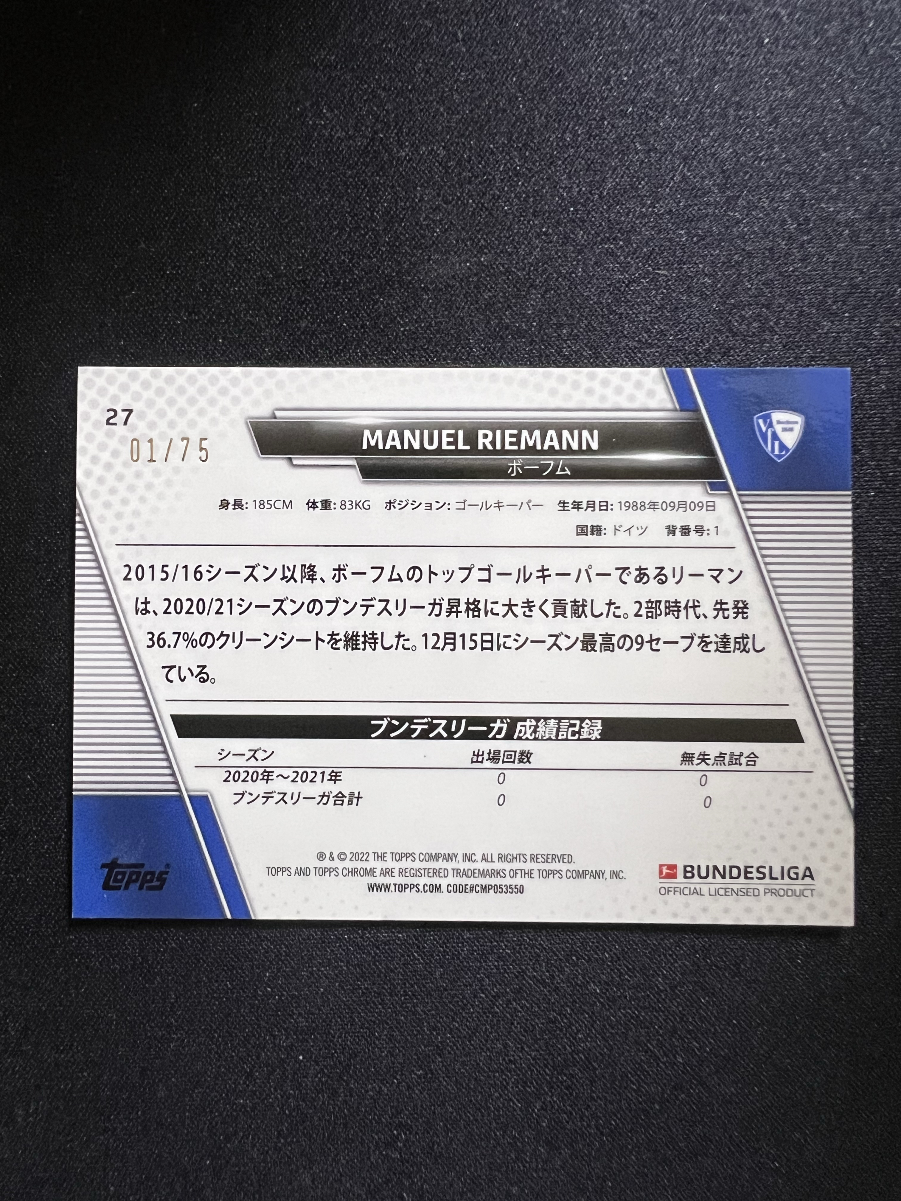 2021-22 Topps Chrome RIEMANN 德甲Chrome 樱花 波鸿 曼努埃尔 里曼 75编 卡片精美 收藏必备 刺客-落枫
