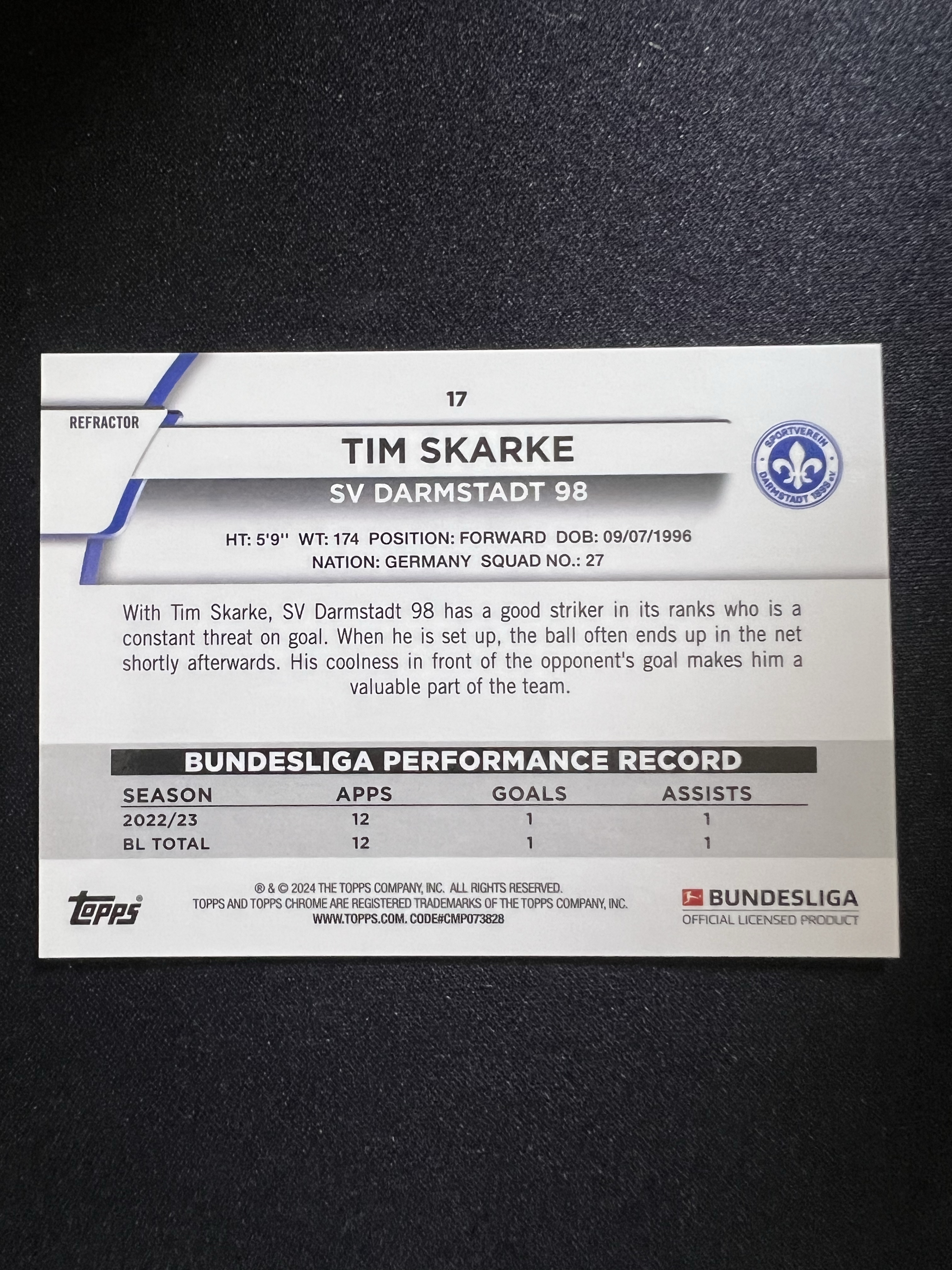 2023-24 Topps Chrome TIM SKARKE 德甲Chrome 达姆斯塔特 蒂姆·斯卡克 399编 卡片精美 收藏必备 刺客-落枫