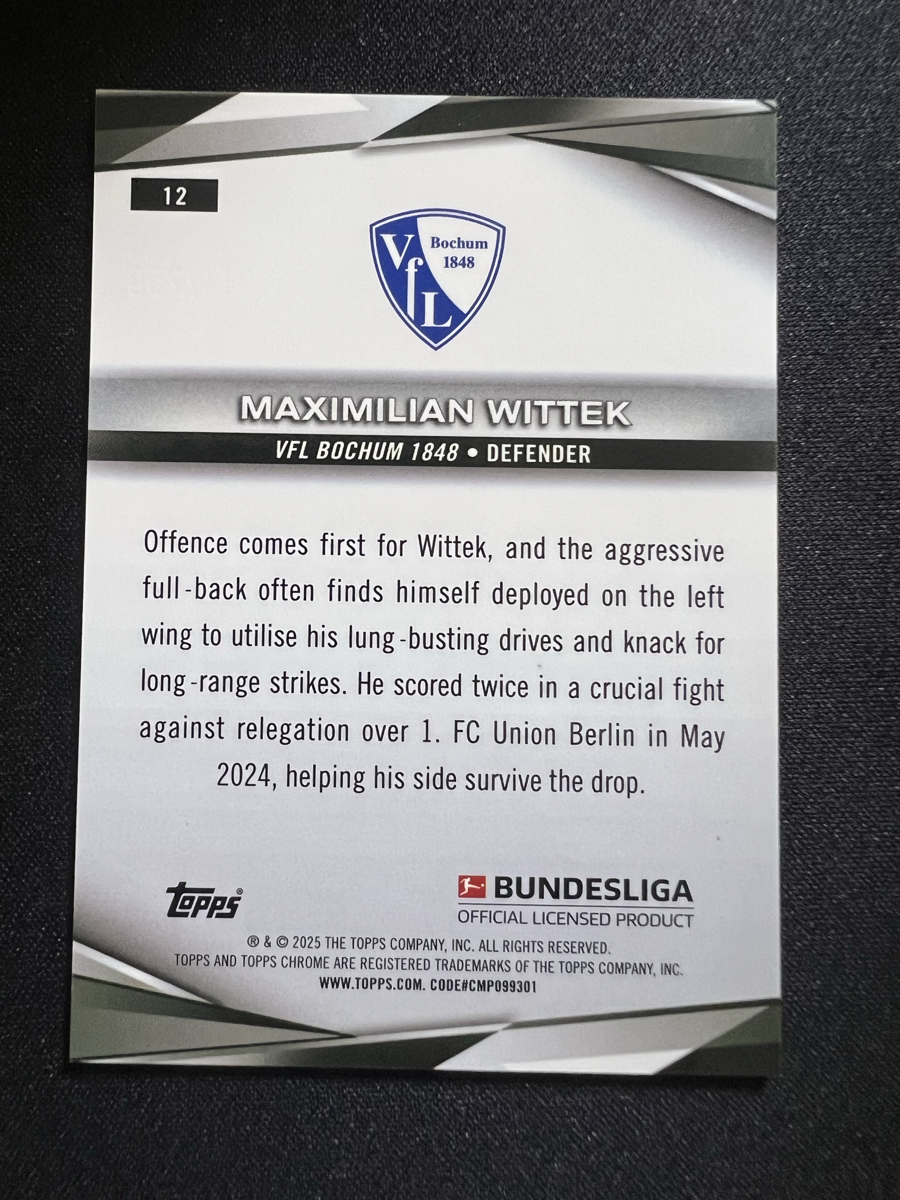 2024-25 Topps Chrome MAXIMILIAN WITTEK 德甲Chrome 波鸿 马克西米利安 菲利普 250编 卡片精美 收藏必备 刺客-落枫